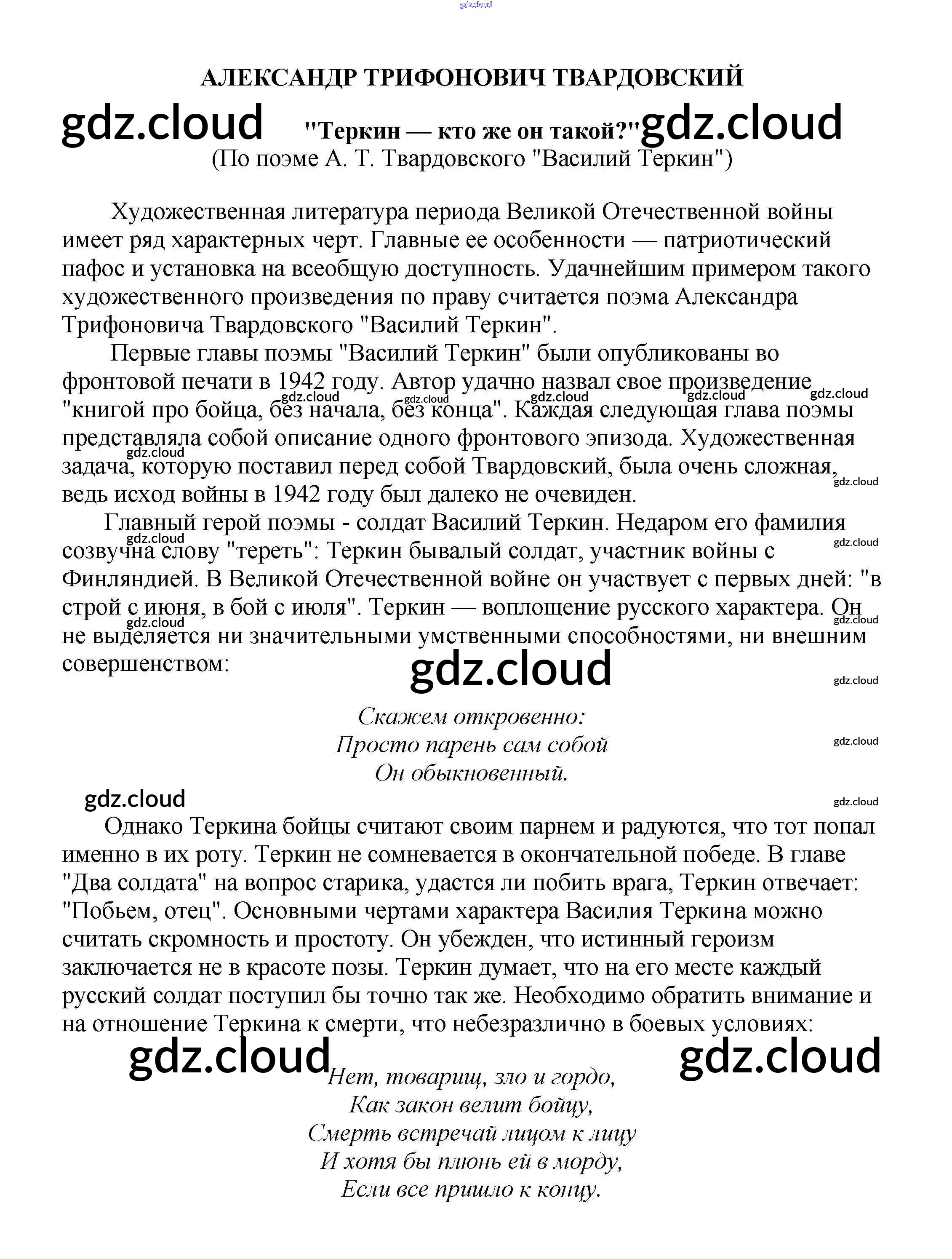 Ответ на задание "Теркин — кто же он такой?" (По поэме А. Т. Твардовского "Василий Теркин") Сочинения Литература за 5, 6, 7, 8, 9, 10 (пятый, шестой, седьмой, восьмой, девятый, десятый) класс Белик, Музычук 2017