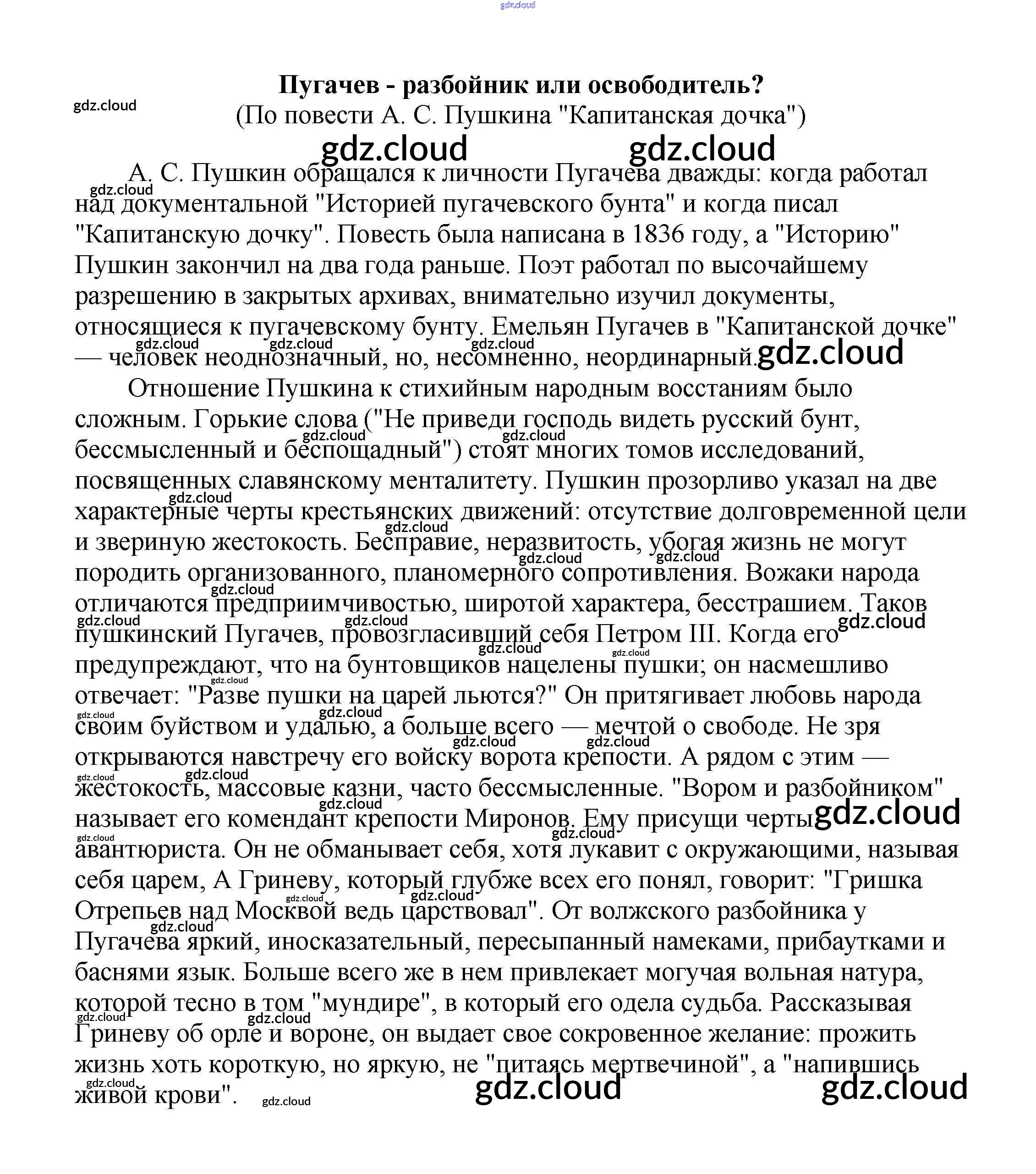 Ответ на задание Пугачев - разбойник или освободитель? (По повести А. С. Пушкина "Капитанская дочка") Сочинения Литература за 5, 6, 7, 8, 9, 10 (пятый, шестой, седьмой, восьмой, девятый, десятый) класс Белик, Музычук 2017