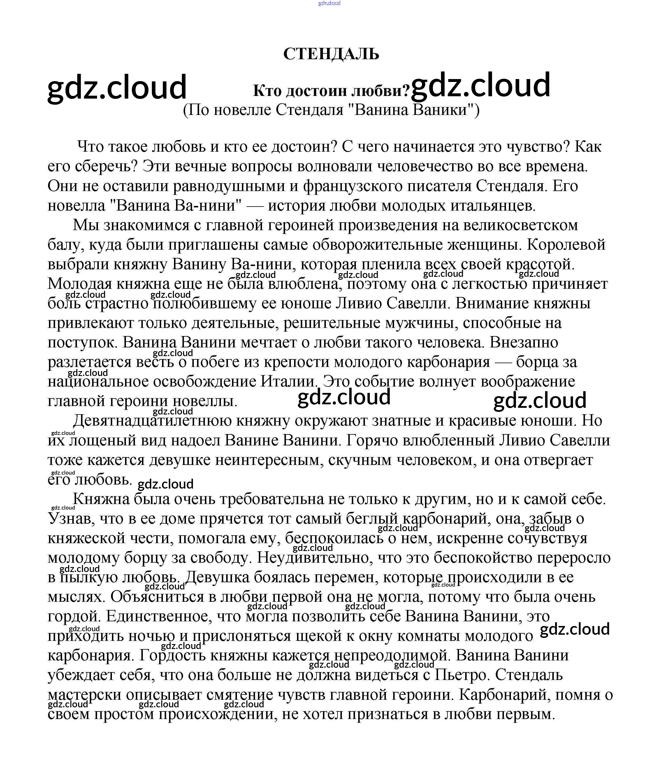 Ответ на задание Кто достоин любви? (По новелле Стендаля "Ванина Ваники") Сочинения Литература за 5, 6, 7, 8, 9, 10 (пятый, шестой, седьмой, восьмой, девятый, десятый) класс Белик, Музычук 2017