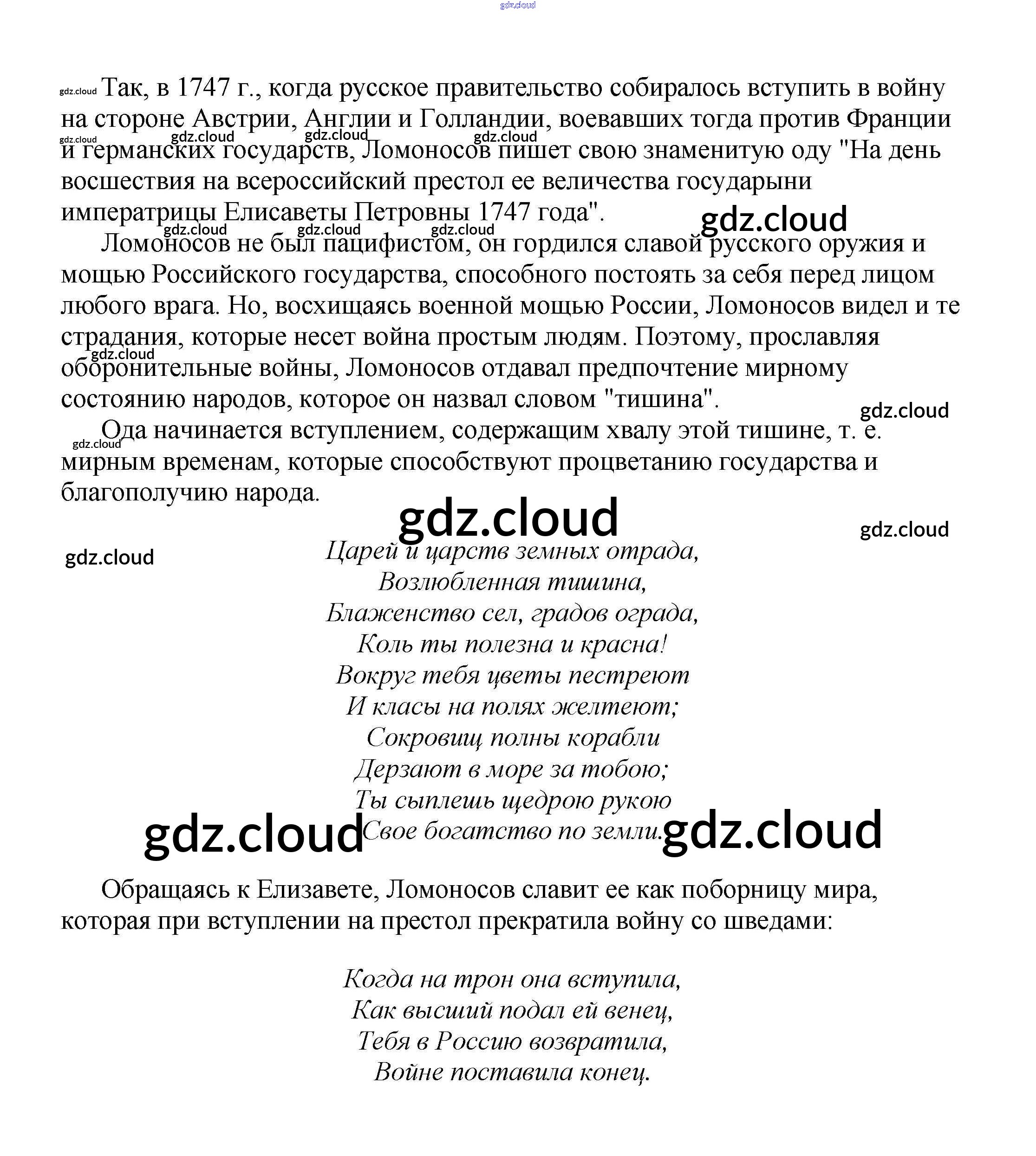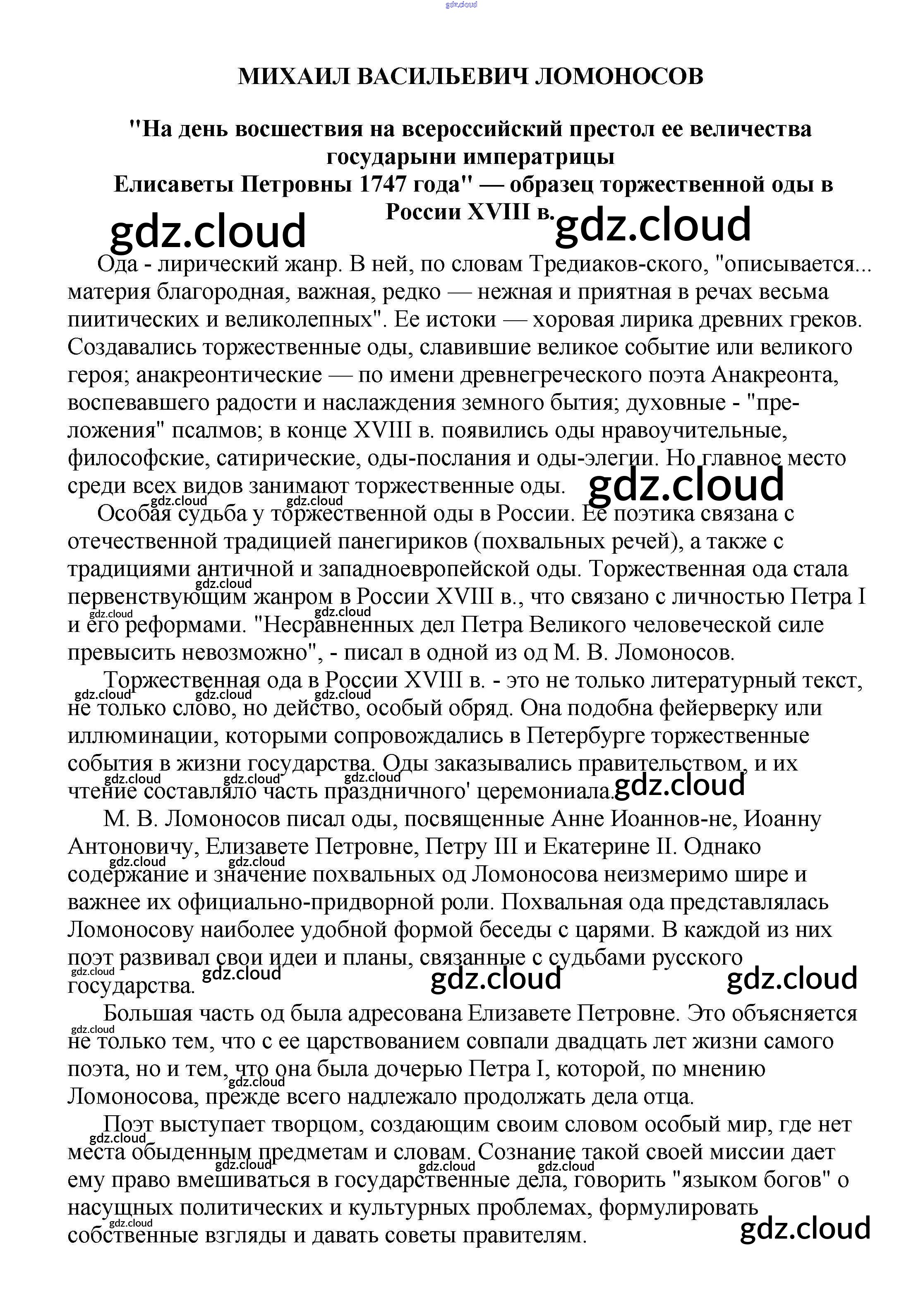 Ответ на задание "На день восшествия на всероссийский престол ее величества государыни императрицы Елисаветы Петровны 1747 года" — образец торжественной оды в России XVIII в. Сочинения Литература за 5, 6, 7, 8, 9, 10 (пятый, шестой, седьмой, восьмой, девятый, десятый) класс Белик, Музычук 2017