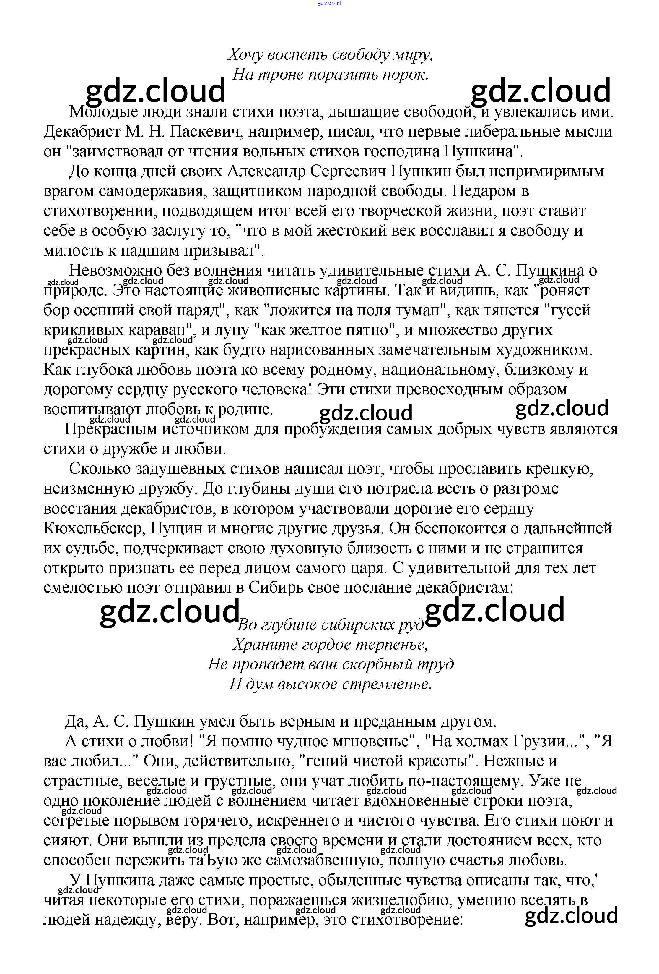 Ответ на задание "Чувства добрые" в поэзии А. С. Пушкина Сочинения Литература за 5, 6, 7, 8, 9, 10 (пятый, шестой, седьмой, восьмой, девятый, десятый) класс Белик, Музычук 2017
