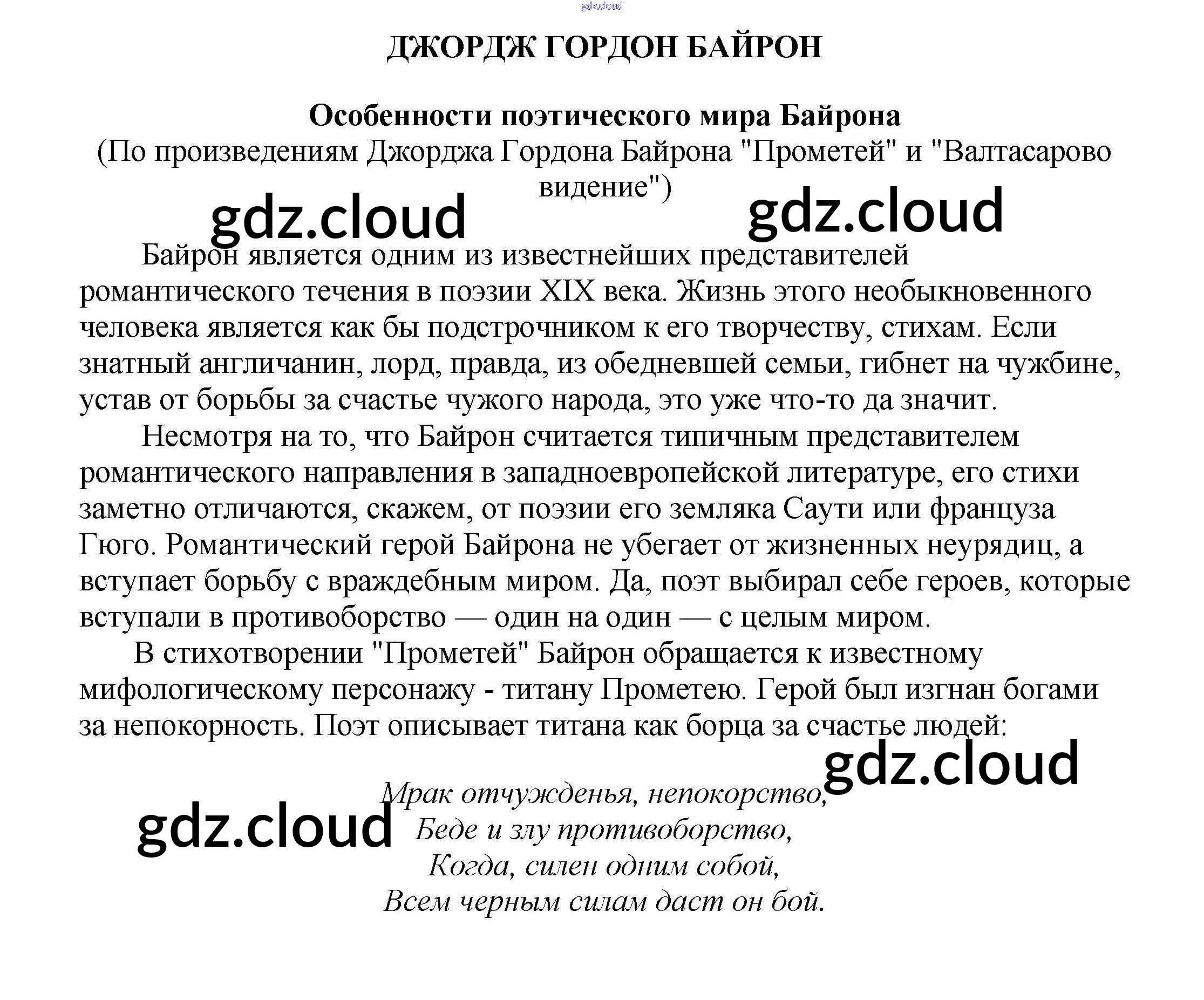 Ответ на задание Особенности поэтического мира Байрона (По произведениям Джорджа Гордона Байрона "Прометей" и "Валтасарово видение") Сочинения Литература за 5, 6, 7, 8, 9, 10 (пятый, шестой, седьмой, восьмой, девятый, десятый) класс Белик, Музычук 2017