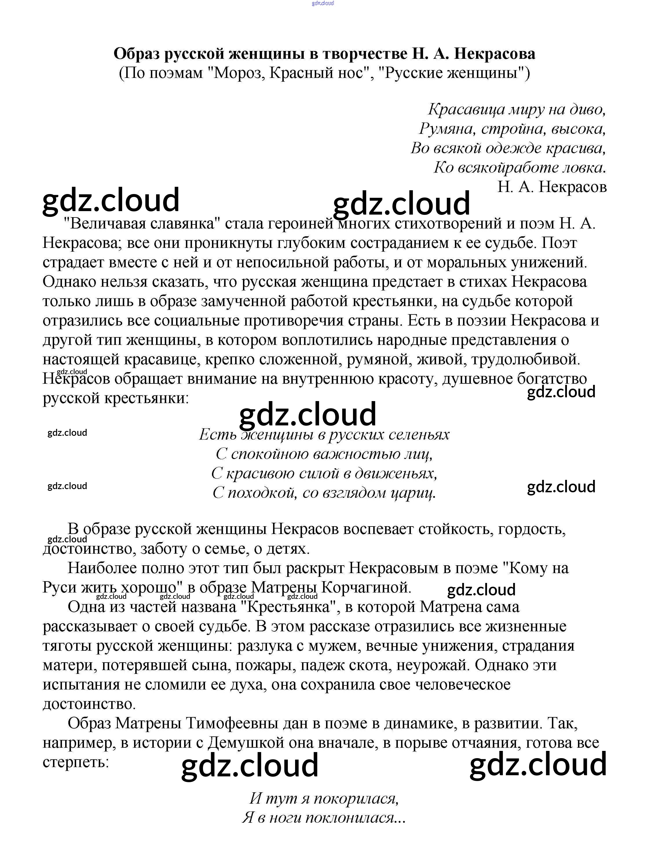 Ответ на задание Образ русской женщины в творчестве Н. А. Некрасова (По поэмам "Мороз, Красный нос", "Русские женщины") Сочинения Литература за 5, 6, 7, 8, 9, 10 (пятый, шестой, седьмой, восьмой, девятый, десятый) класс Белик, Музычук 2017