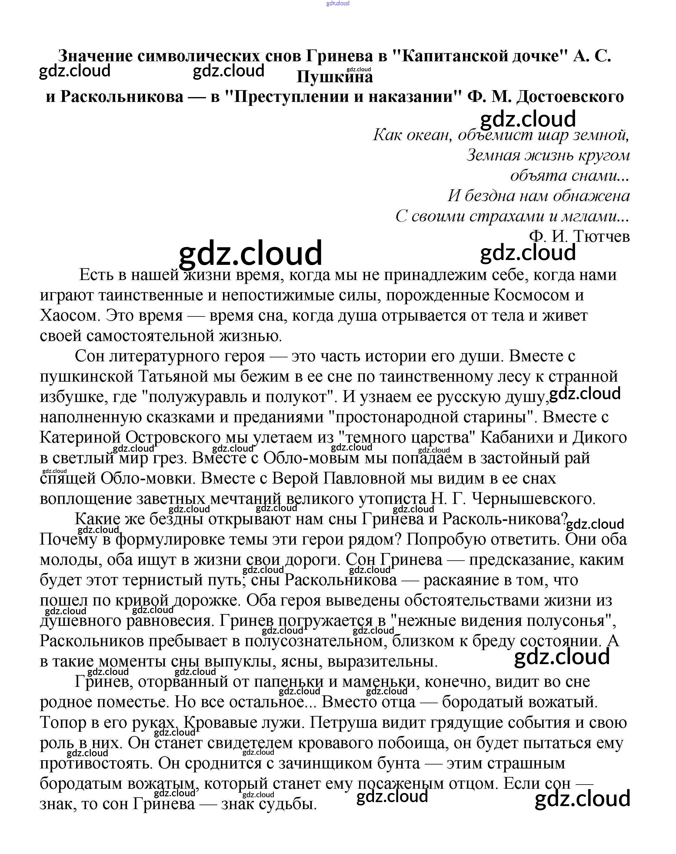 Ответ на задание Значение символических снов Гринева в "Капитанской дочке" А. С. Пушкина и Раскольникова — в "Преступлении и наказании" Ф. М. Достоевского Сочинения Литература за 5, 6, 7, 8, 9, 10 (пятый, шестой, седьмой, восьмой, девятый, десятый) класс Белик, Музычук 2017