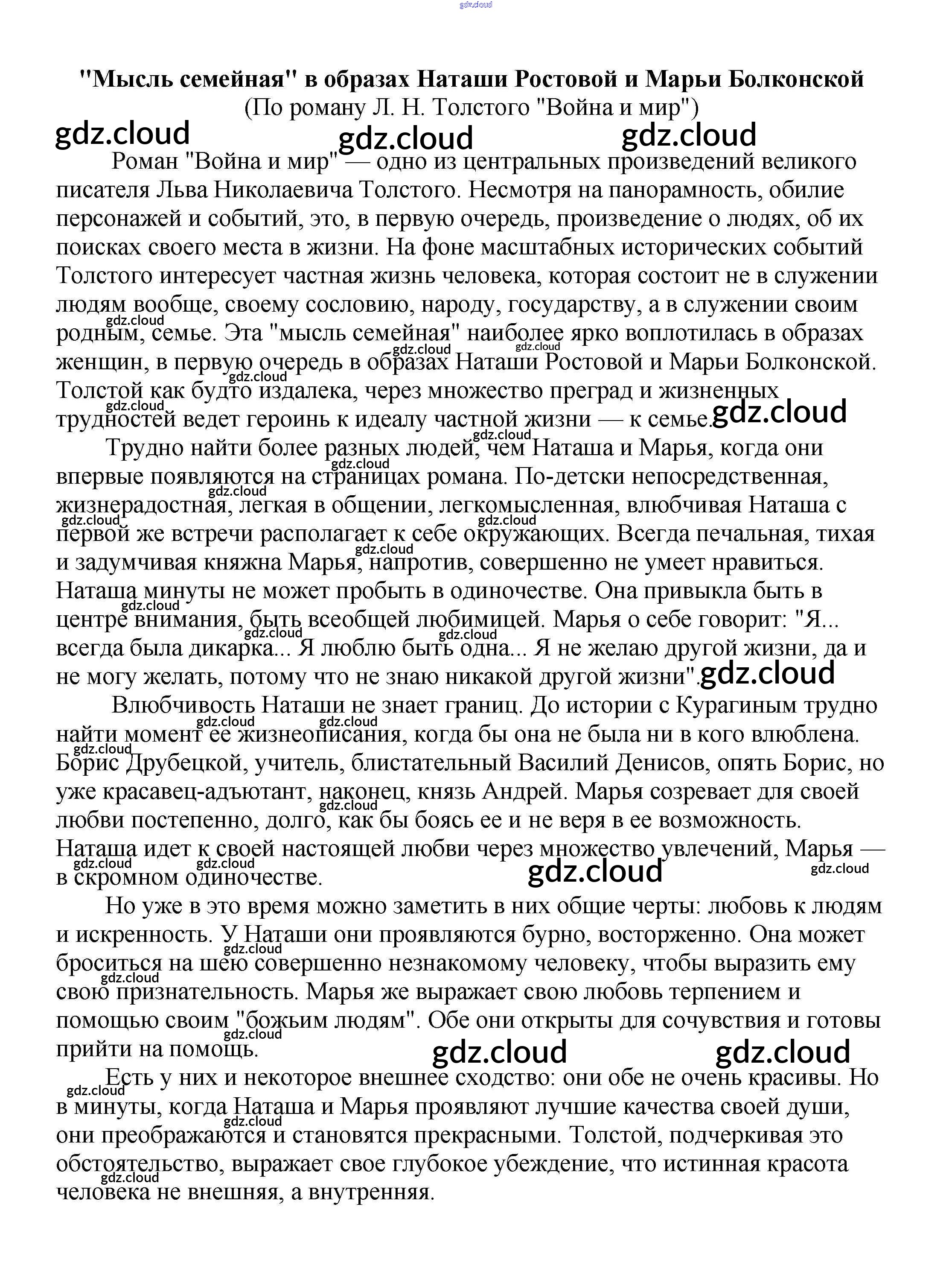 Ответ на задание "Мысль семейная" в образах Наташи Ростовой и Марьи Болконской (По роману Л. Н. Толстого "Война и мир") Сочинения Литература за 5, 6, 7, 8, 9, 10 (пятый, шестой, седьмой, восьмой, девятый, десятый) класс Белик, Музычук 2017