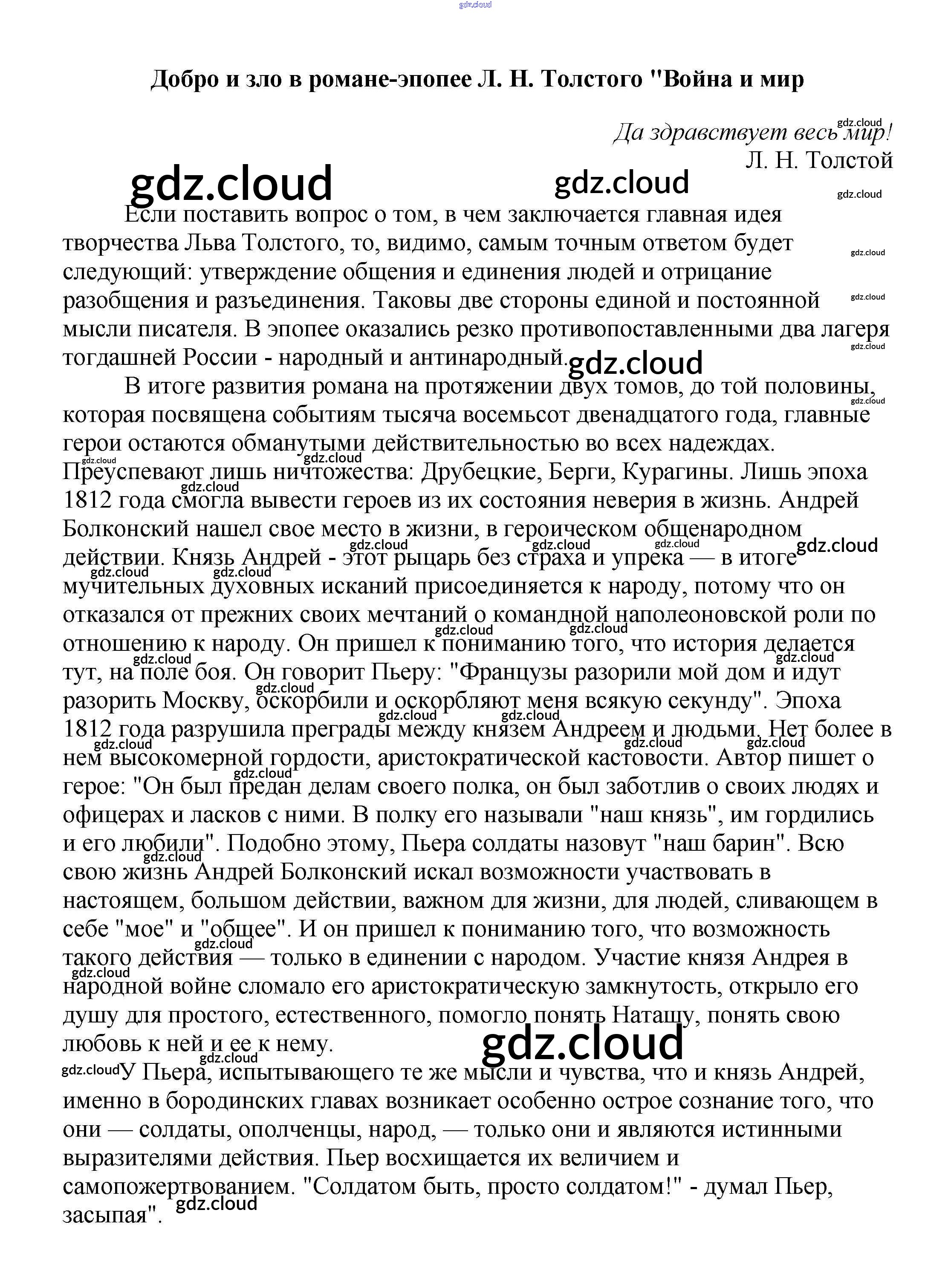 Ответ на задание Добро и зло в романе-эпопее Л. Н. Толстого "Война и мир Сочинения Литература за 5, 6, 7, 8, 9, 10 (пятый, шестой, седьмой, восьмой, девятый, десятый) класс Белик, Музычук 2017