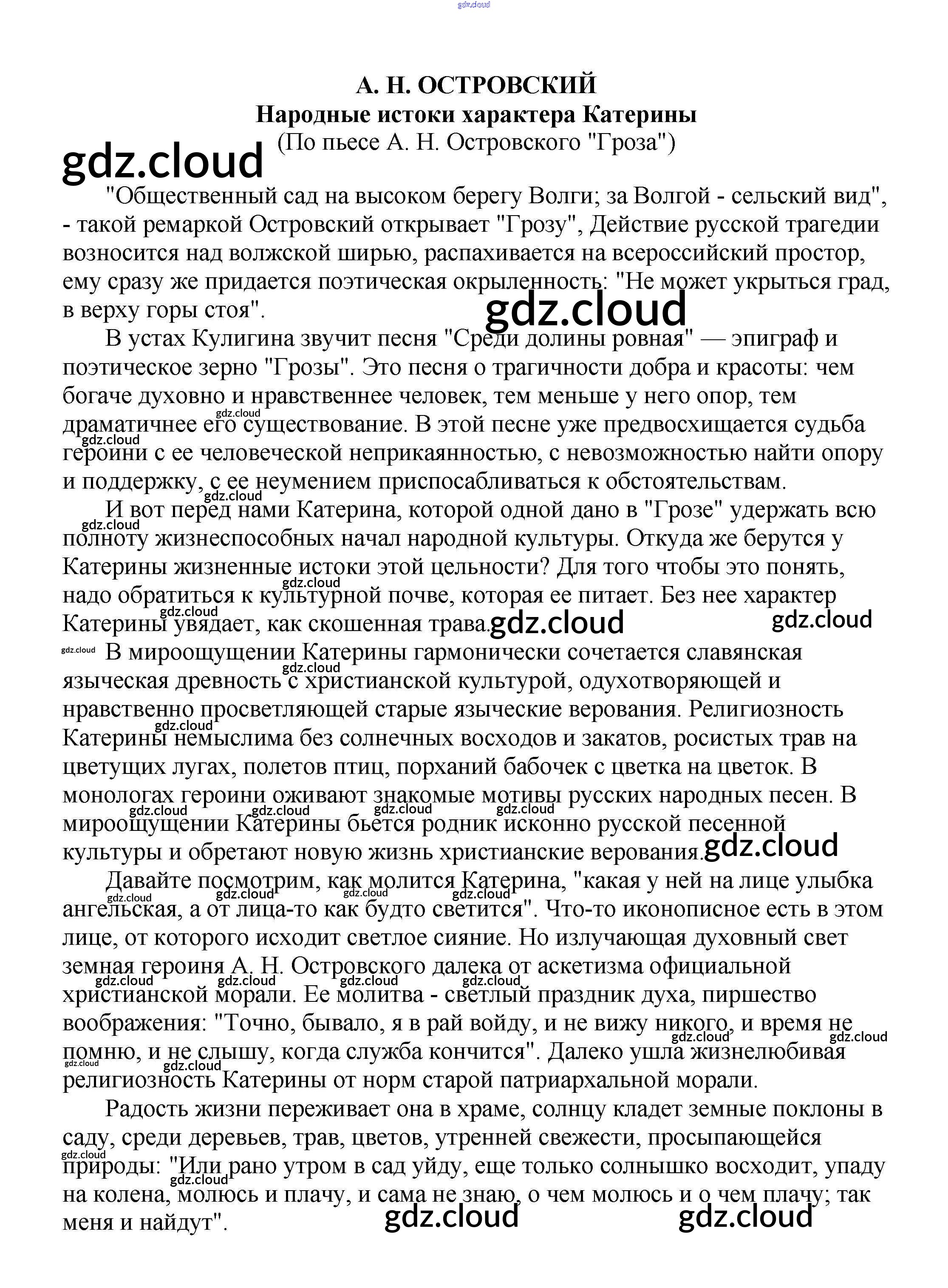 Ответ на задание Народные истоки характера Катерины (По пьесе А. Н. Островского "Гроза") Сочинения Литература за 5, 6, 7, 8, 9, 10 (пятый, шестой, седьмой, восьмой, девятый, десятый) класс Белик, Музычук 2017