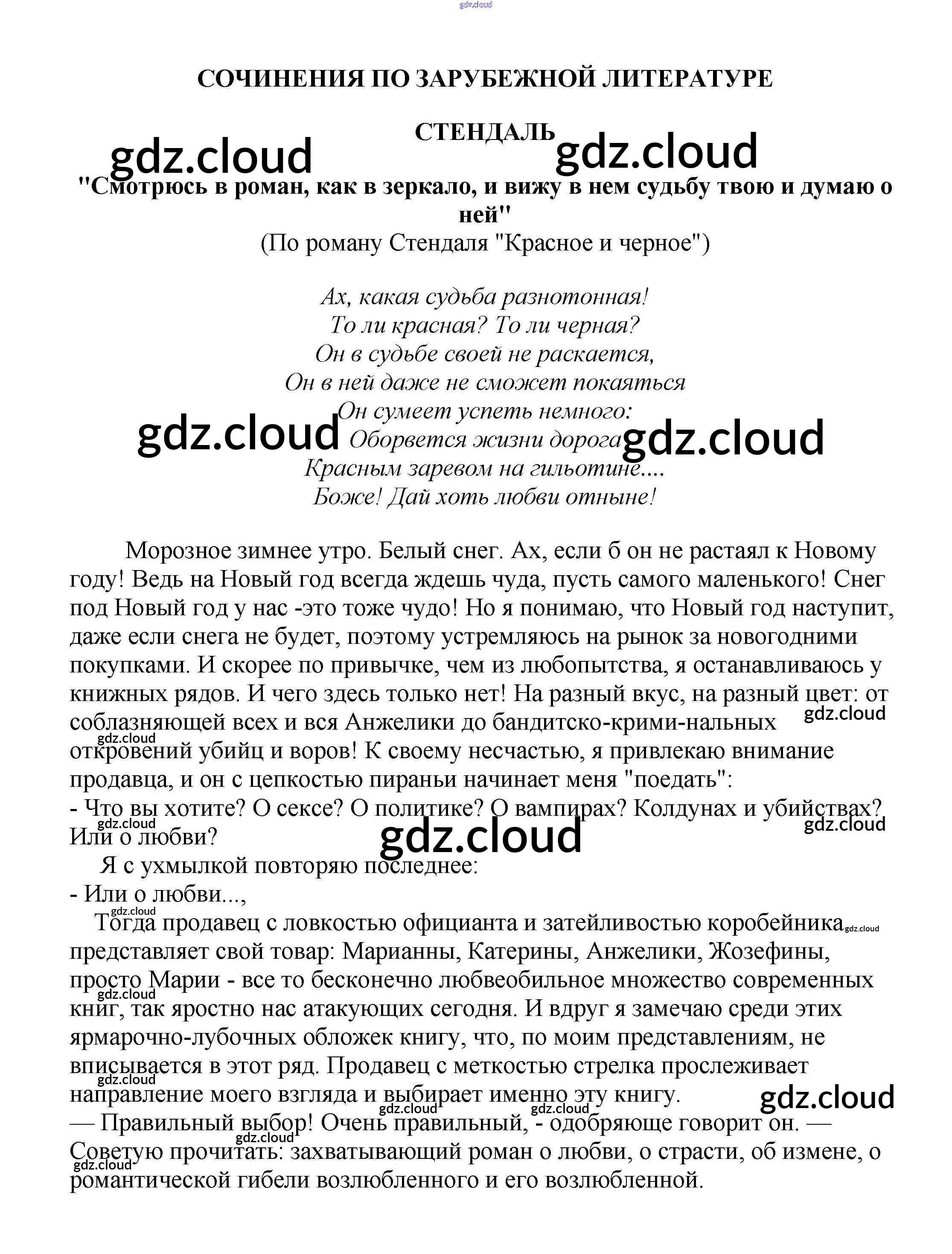 Ответ на задание "Смотрюсь в роман, как в зеркало, и вижу в нем судьбу твою и думаю о ней" (По роману Стендаля "Красное и черное") Сочинения Литература за 5, 6, 7, 8, 9, 10 (пятый, шестой, седьмой, восьмой, девятый, десятый) класс Белик, Музычук 2017