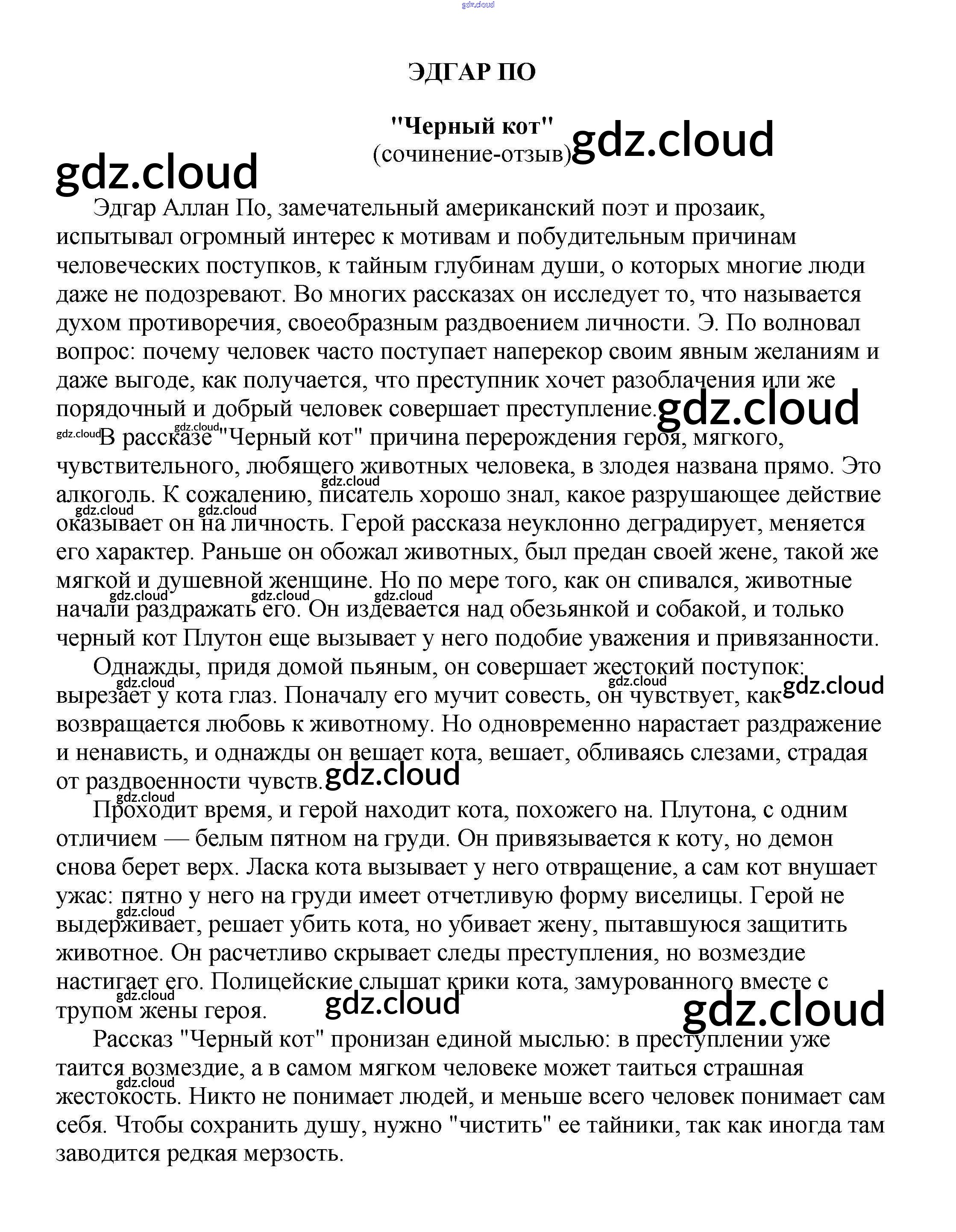 Ответ на задание "Черный кот" (сочинение-отзыв) Эдгар По Сочинения Литература за 5, 6, 7, 8, 9, 10 (пятый, шестой, седьмой, восьмой, девятый, десятый) класс Белик, Музычук 2017