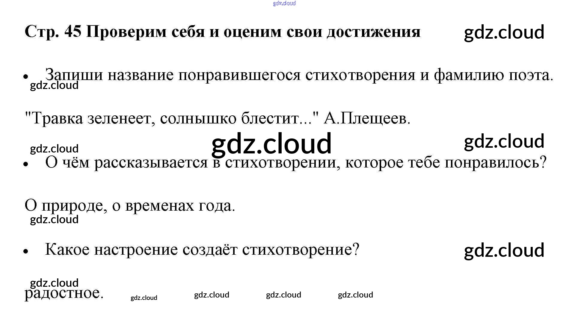 Ответ на задание 45 Рабочая тетрадь Литература за 1 (первый) класс Бойкина, Виноградская Школа России 2017 ФГОС онлайн и без номера телефона.