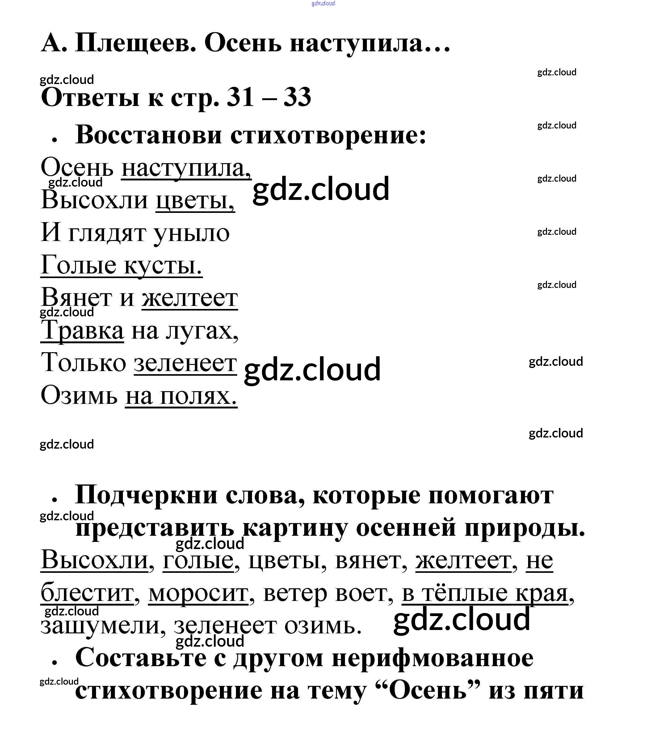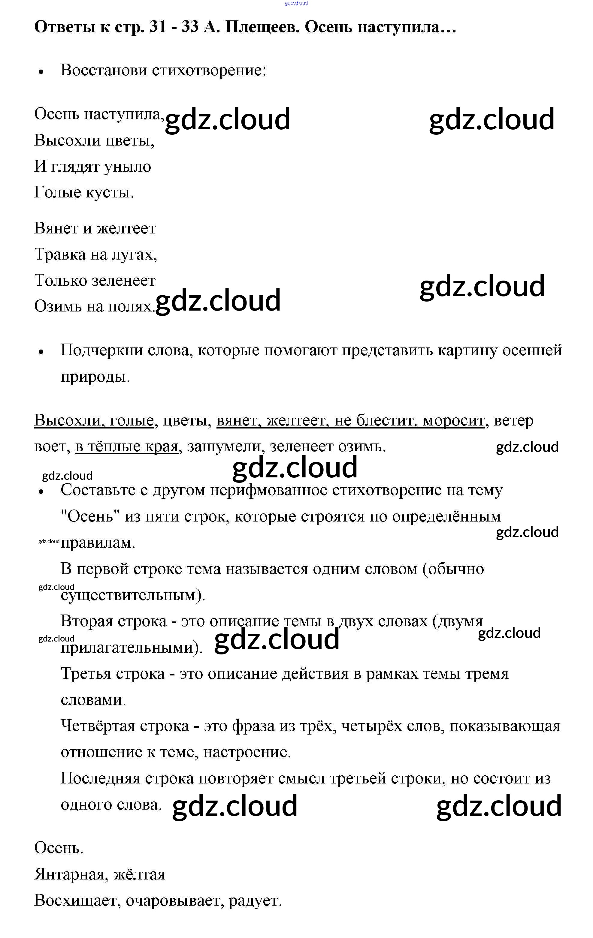 Ответ на задание 31 Рабочая тетрадь Литература за 2 (второй) класс Бойкина, Виноградская Школа России 2018