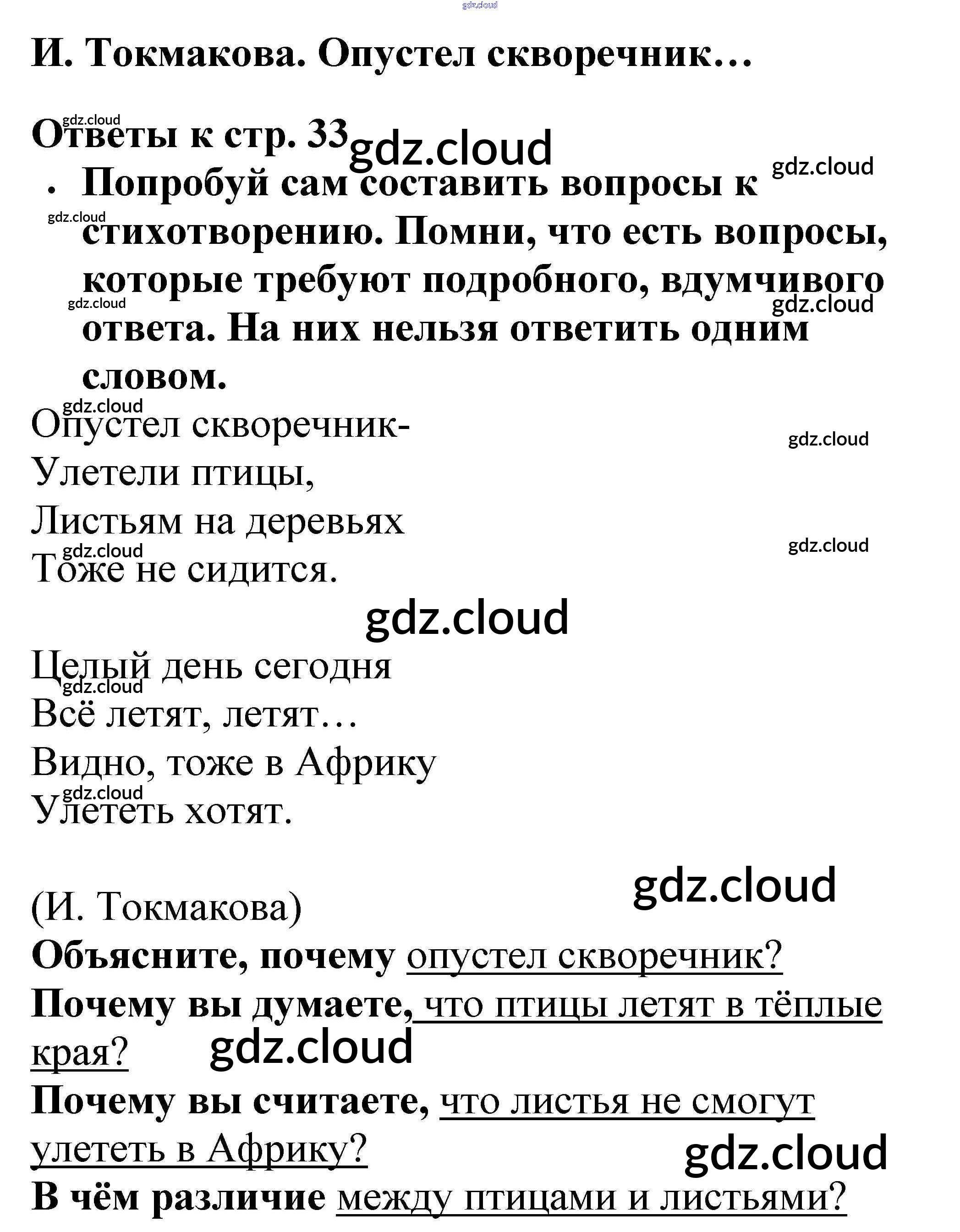 Ответ на задание 33 Рабочая тетрадь Литература за 2 (второй) класс Бойкина, Виноградская Школа России 2018