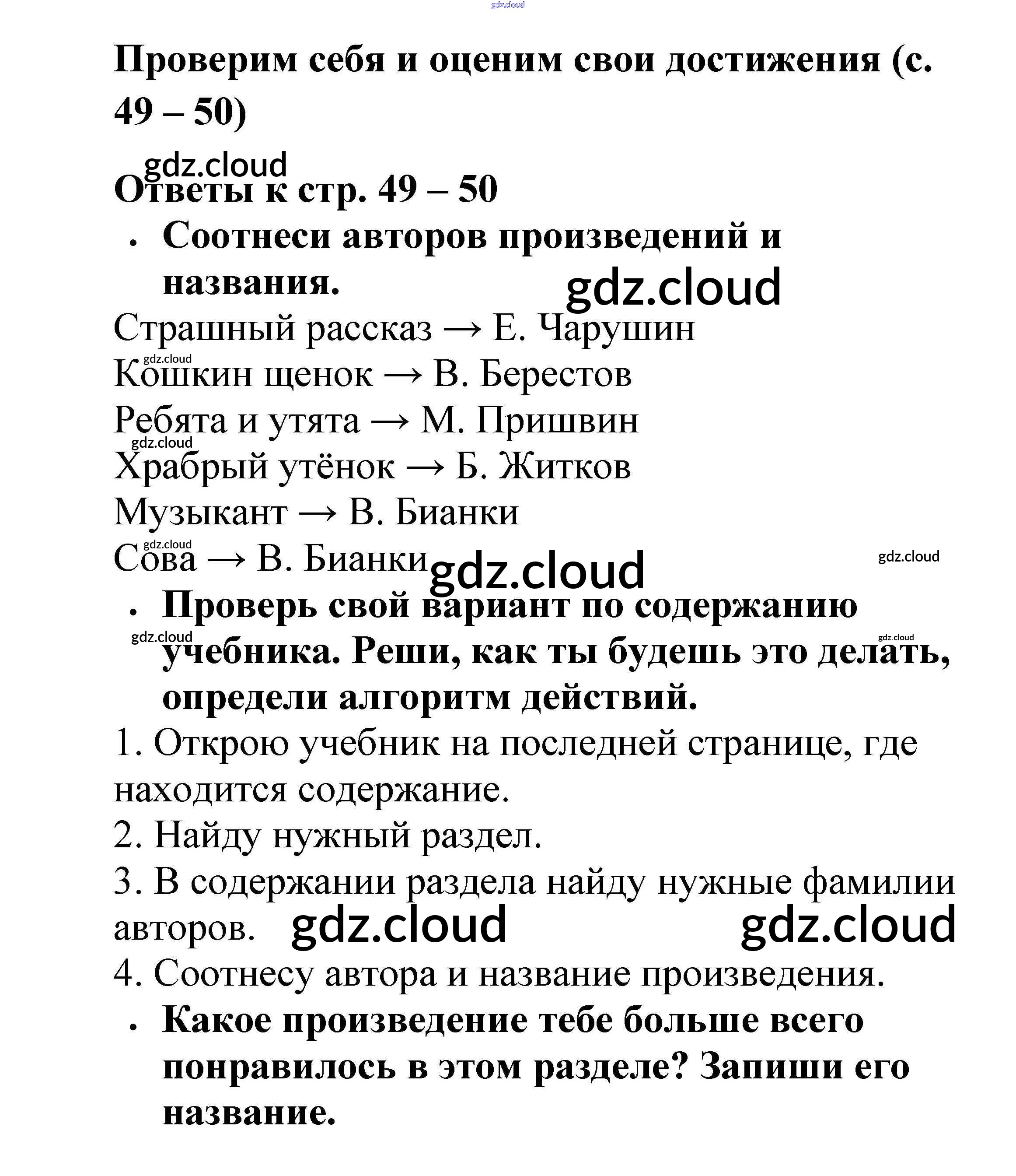 Ответ на задание 49 Рабочая тетрадь Литература за 2 (второй) класс Бойкина, Виноградская Школа России 2018