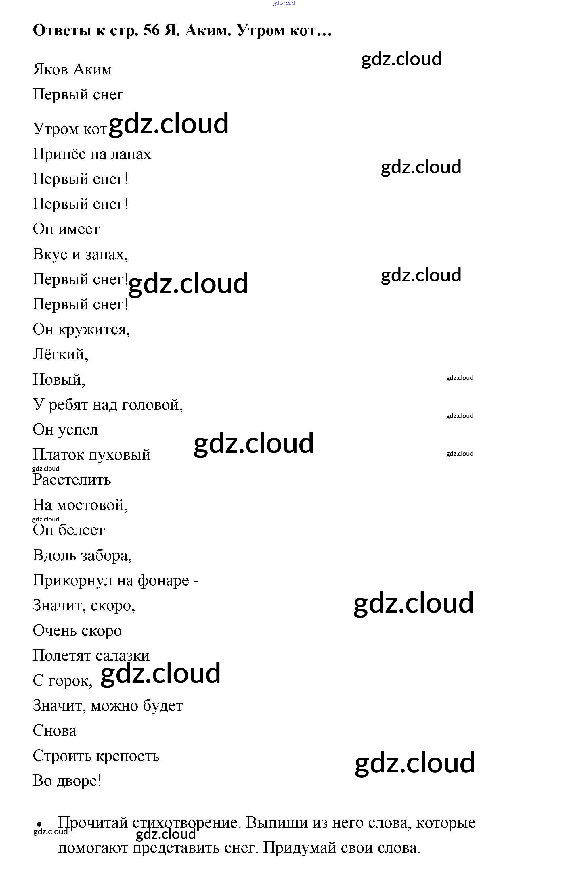 Ответ на задание 56 Рабочая тетрадь Литература за 2 (второй) класс Бойкина, Виноградская Школа России 2018
