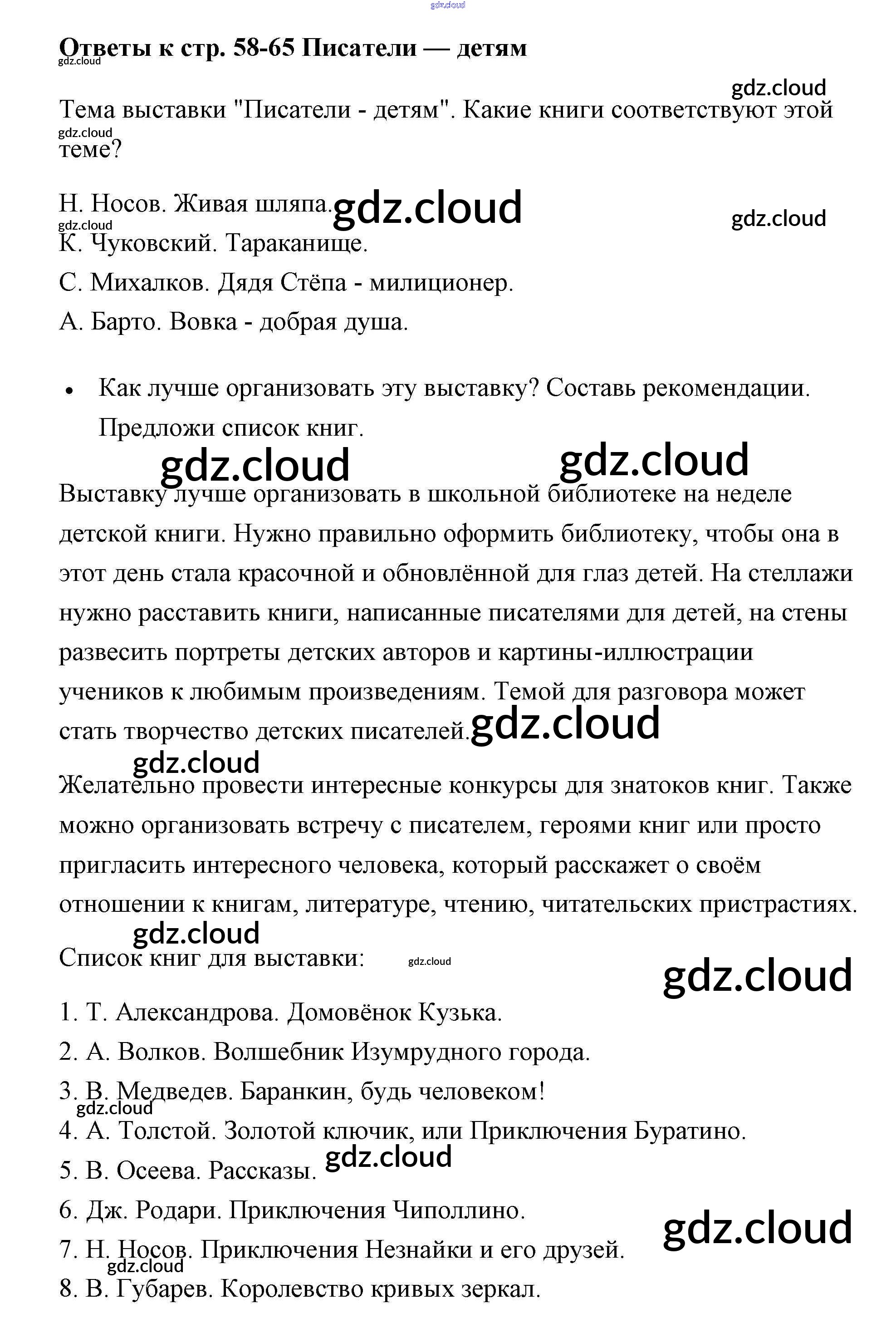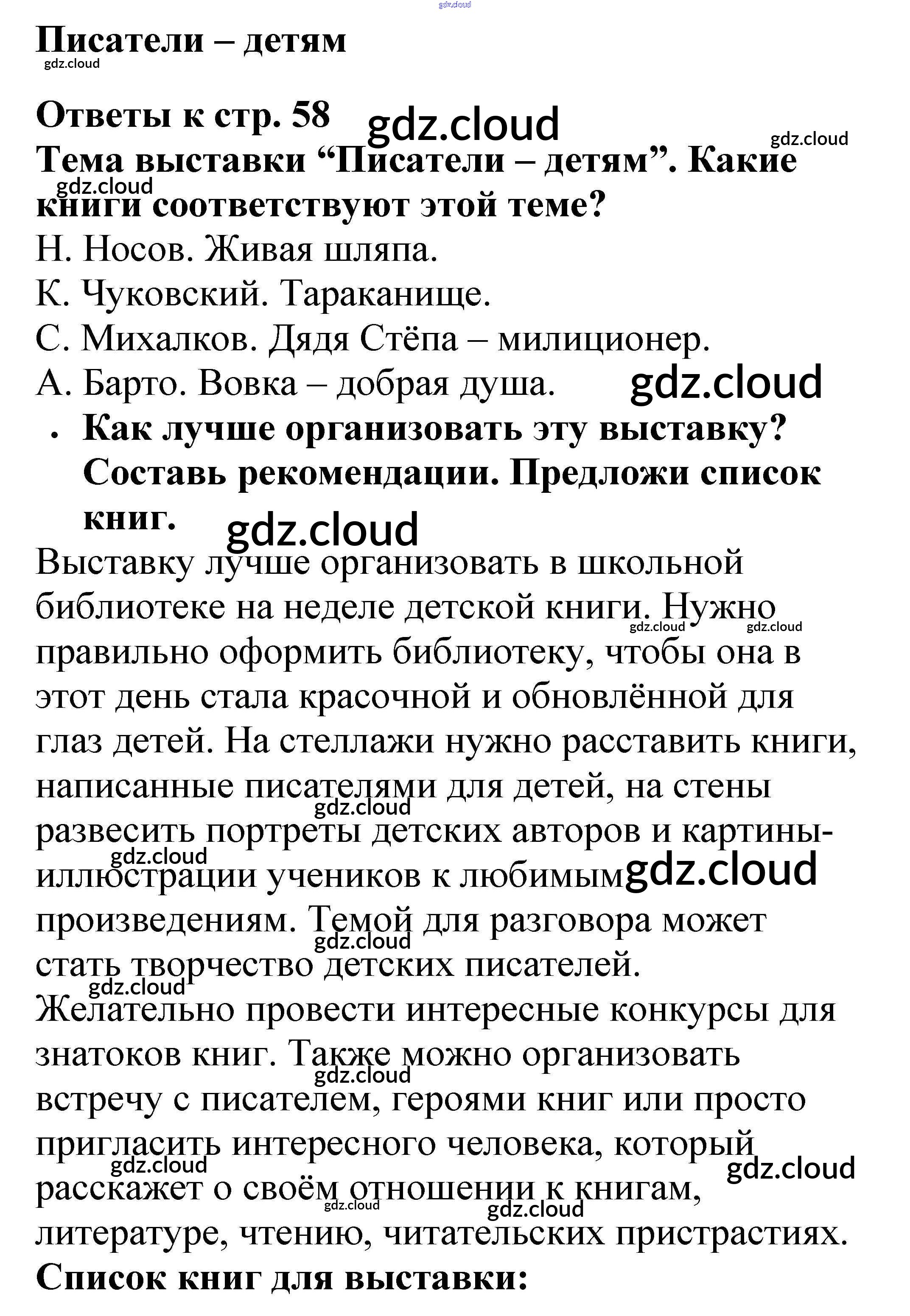 Ответ на задание 58 Рабочая тетрадь Литература за 2 (второй) класс Бойкина, Виноградская Школа России 2018