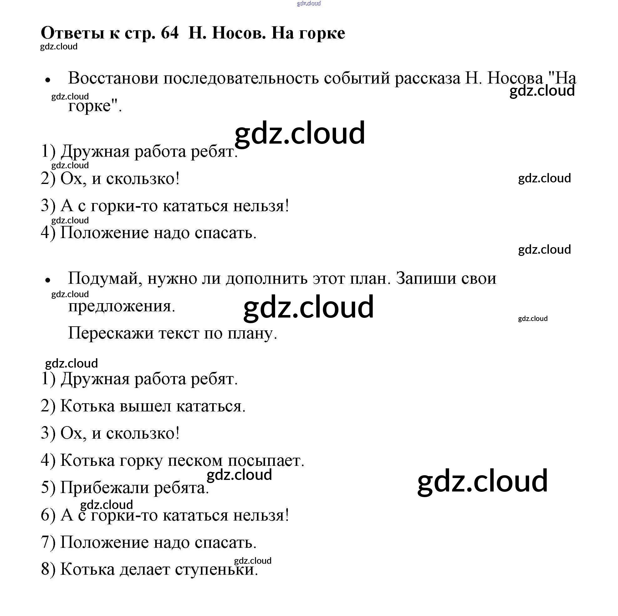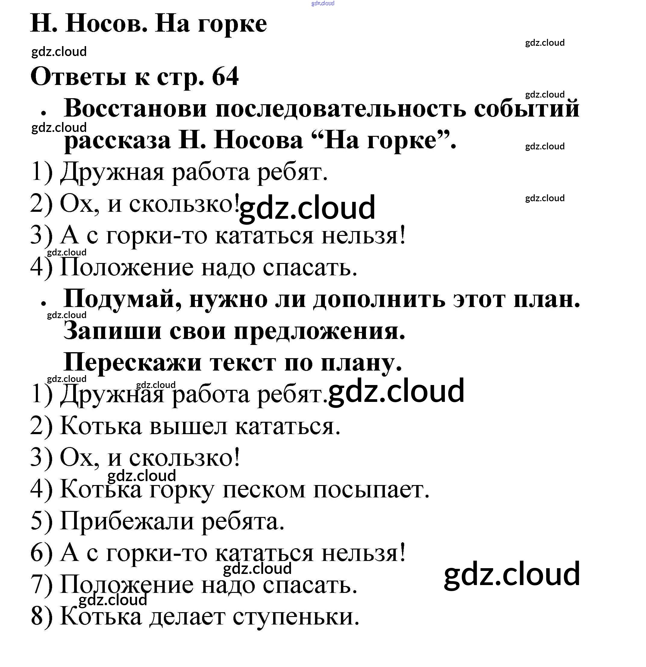 Ответ на задание 64 Рабочая тетрадь Литература за 2 (второй) класс Бойкина, Виноградская Школа России 2018