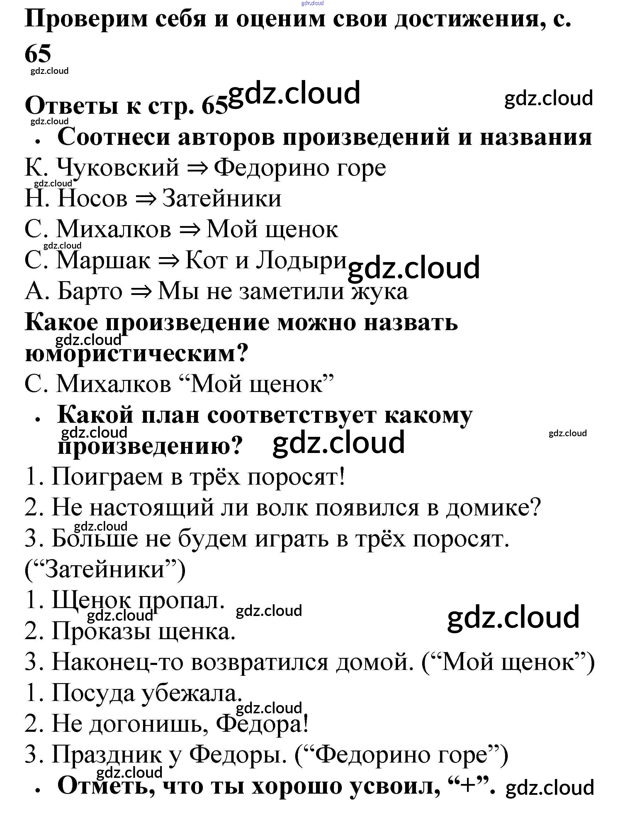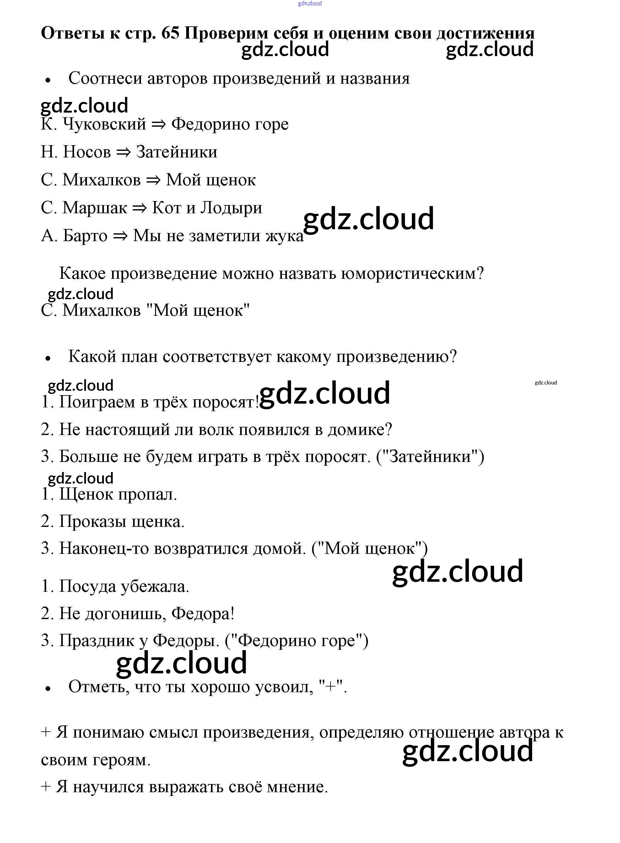 Ответ на задание 65 Рабочая тетрадь Литература за 2 (второй) класс Бойкина, Виноградская Школа России 2018
