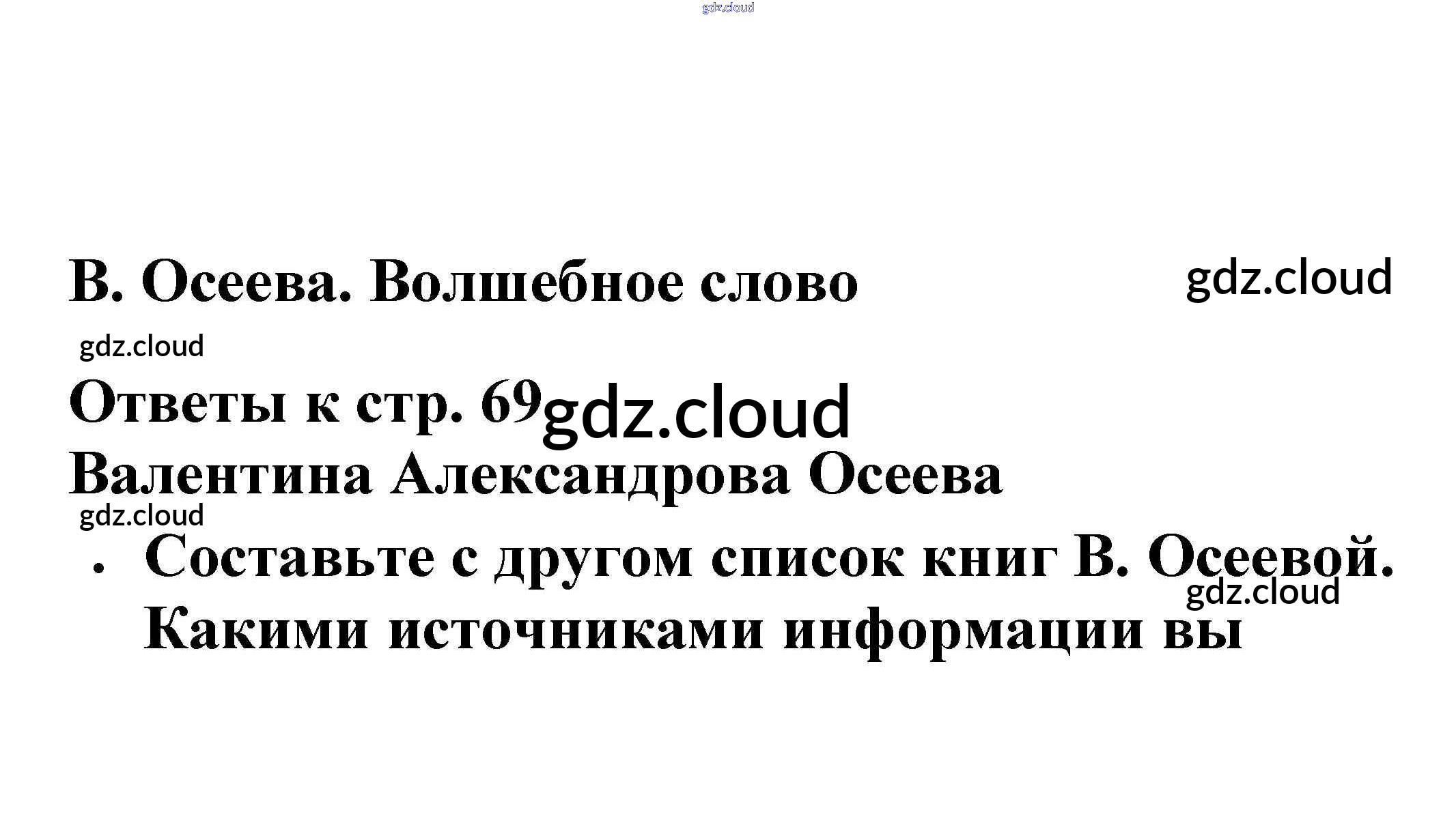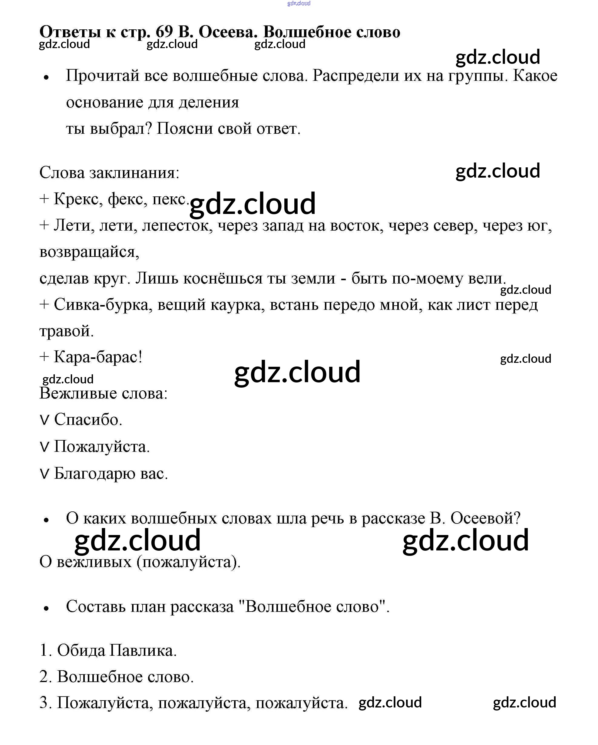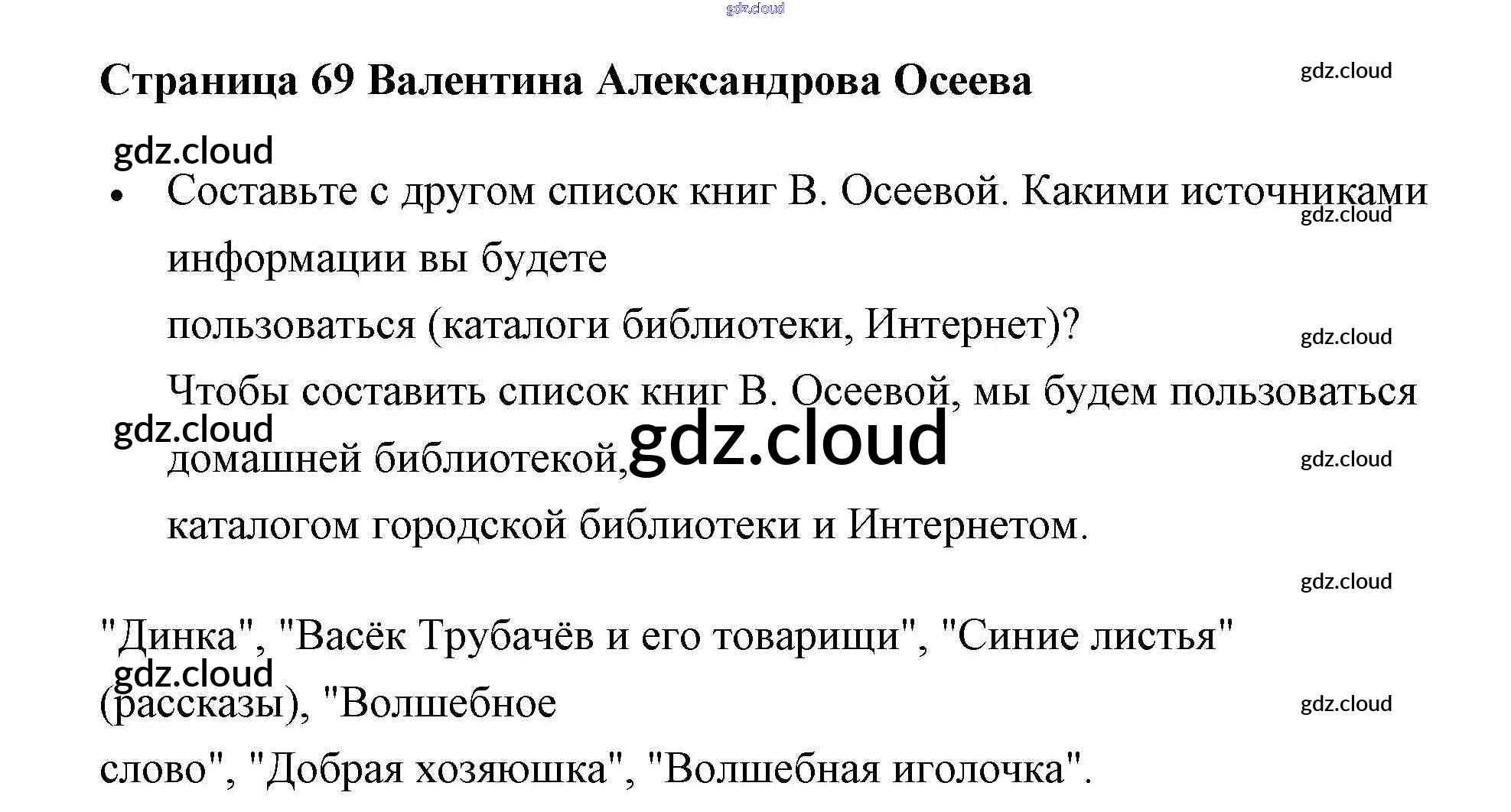 Ответ на задание 69 Рабочая тетрадь Литература за 2 (второй) класс Бойкина, Виноградская Школа России 2018