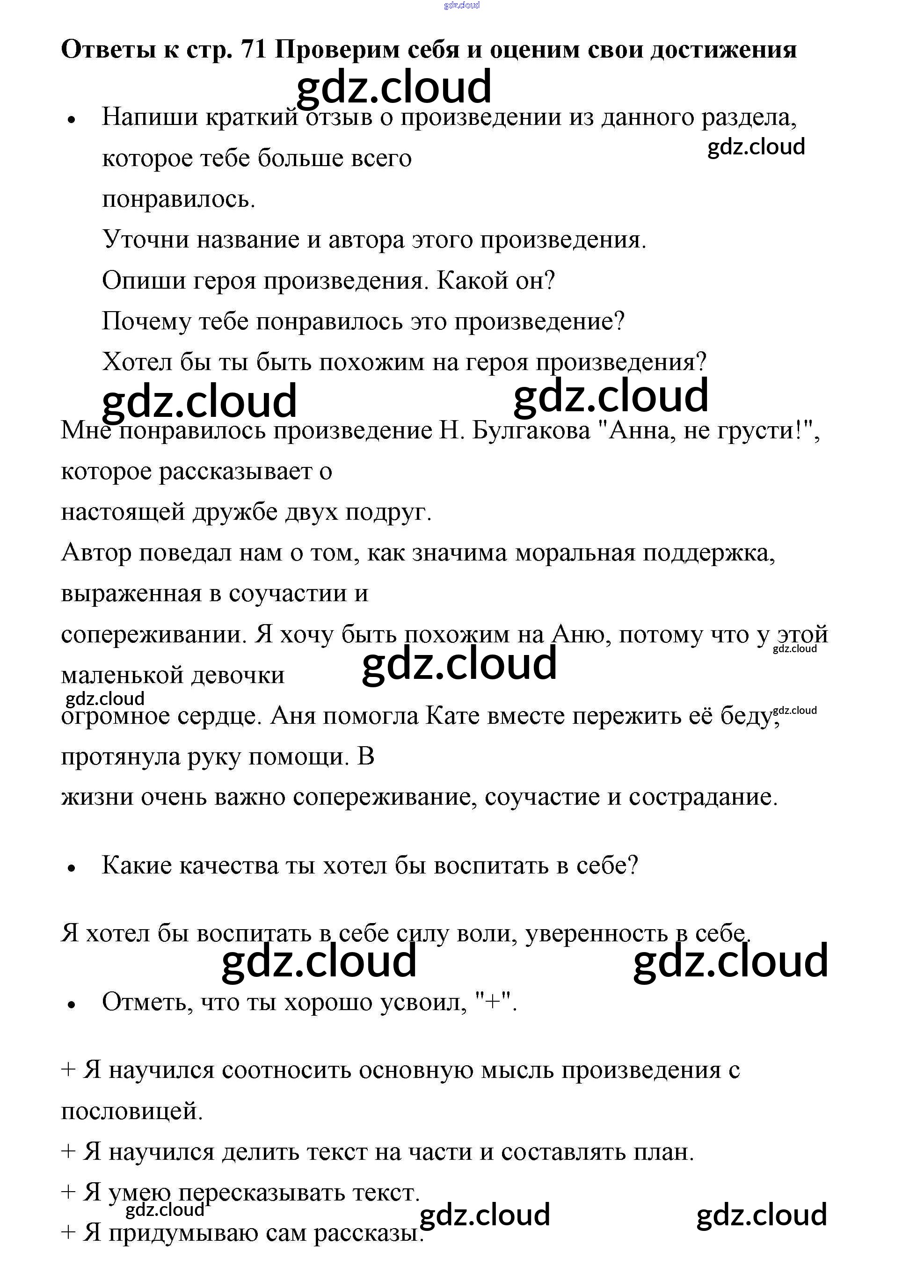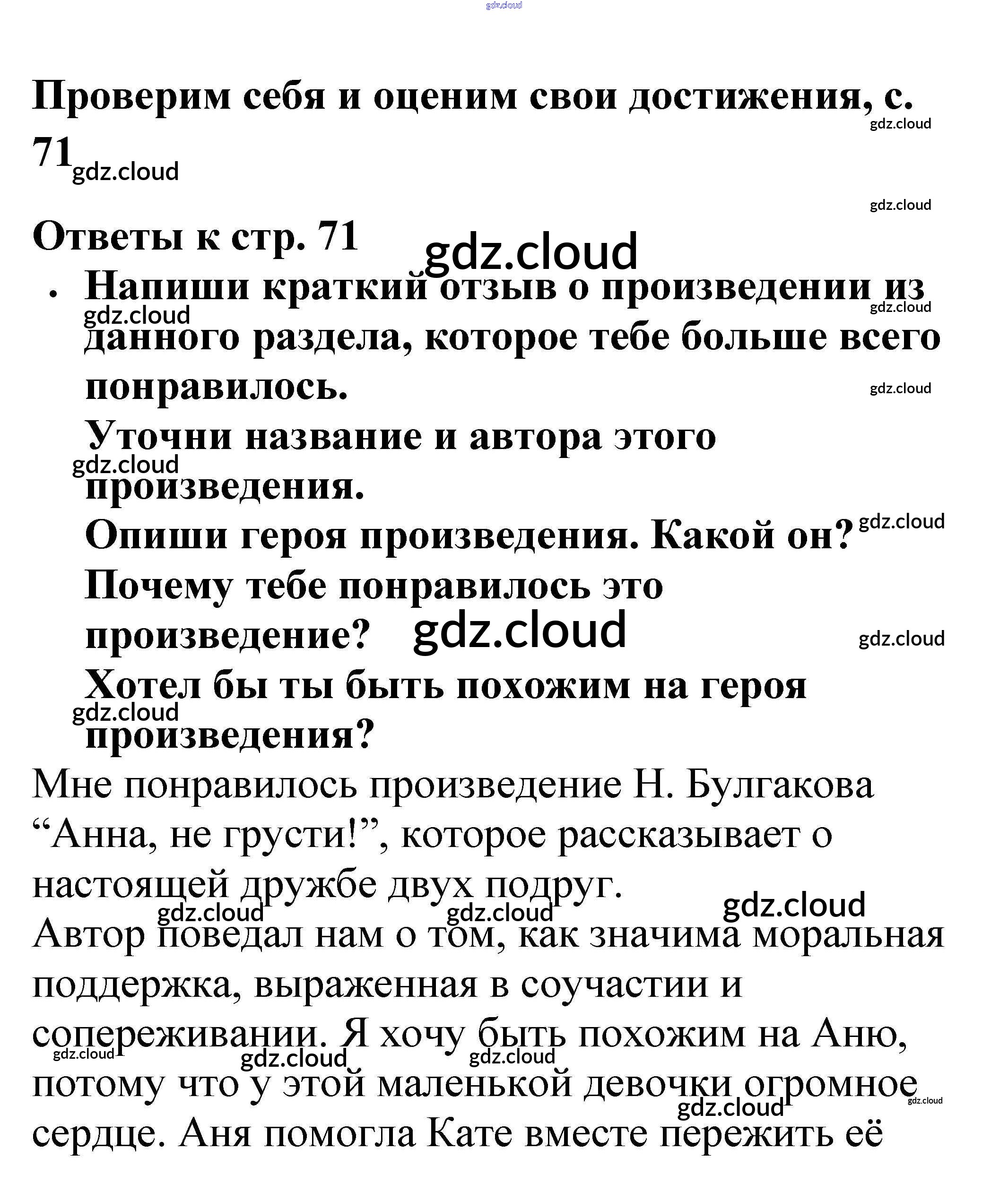 Ответ на задание 71 Рабочая тетрадь Литература за 2 (второй) класс Бойкина, Виноградская Школа России 2018