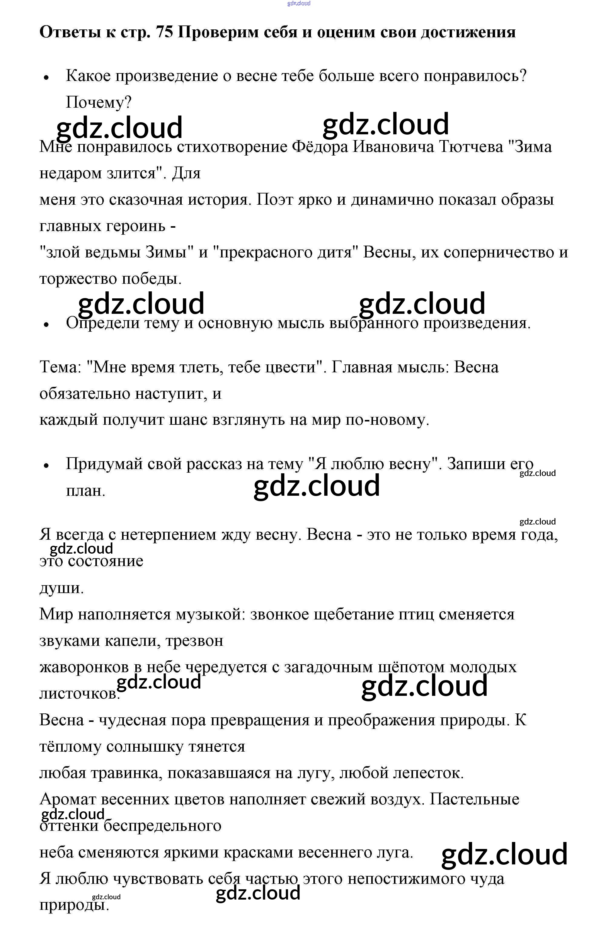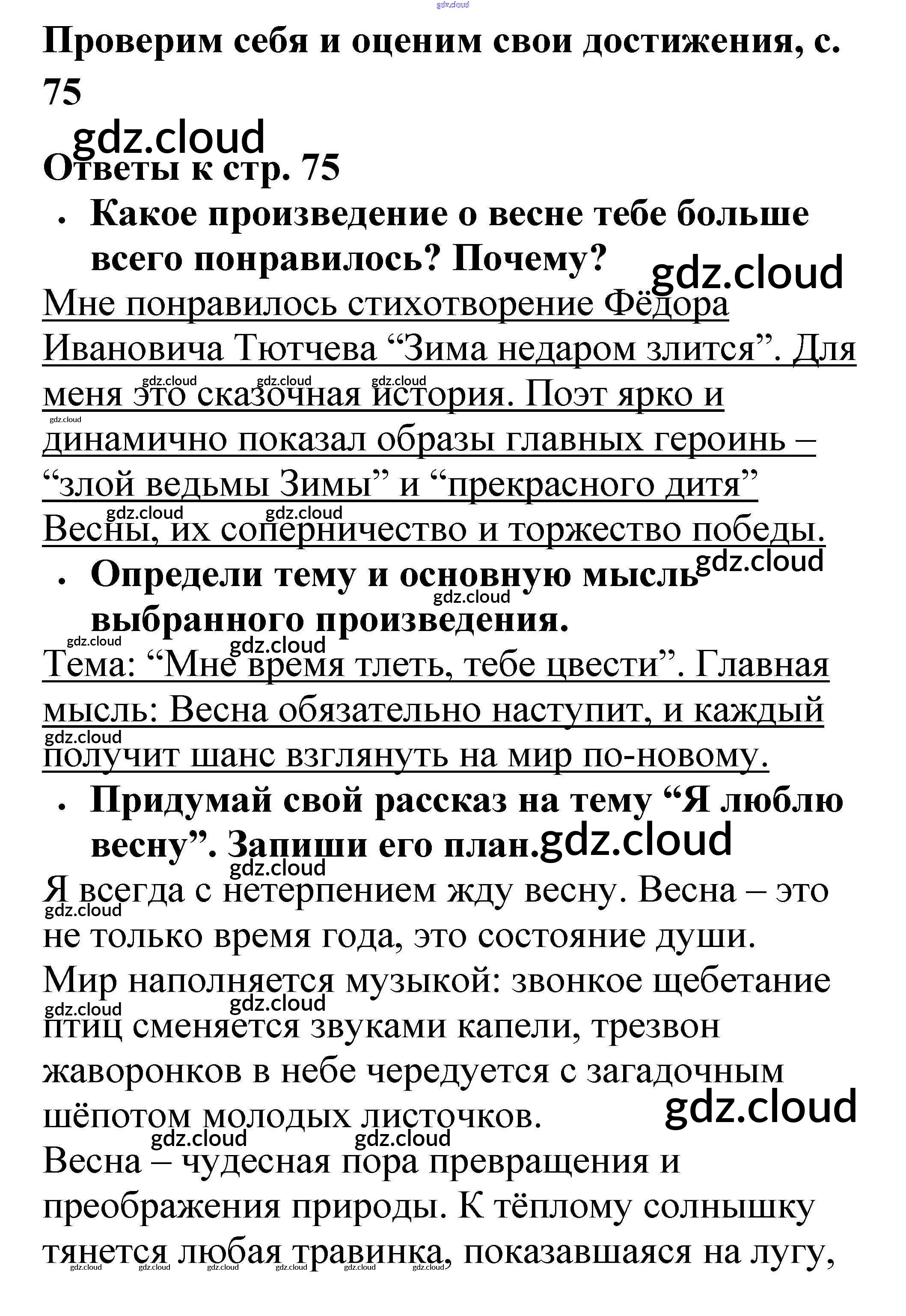 Ответ на задание 75 Рабочая тетрадь Литература за 2 (второй) класс Бойкина, Виноградская Школа России 2018