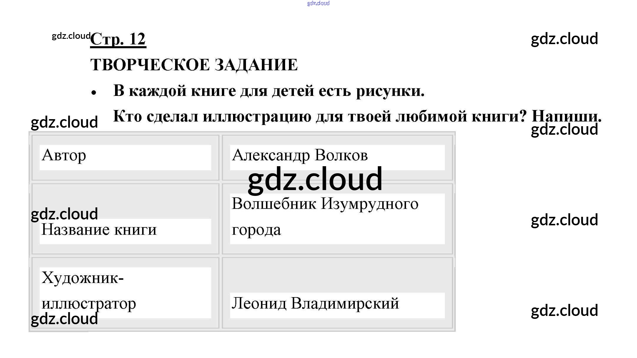 Ответ на задание 12 Творческая тетрадь Литература за 2 (второй) класс Коти Перспектива 2017