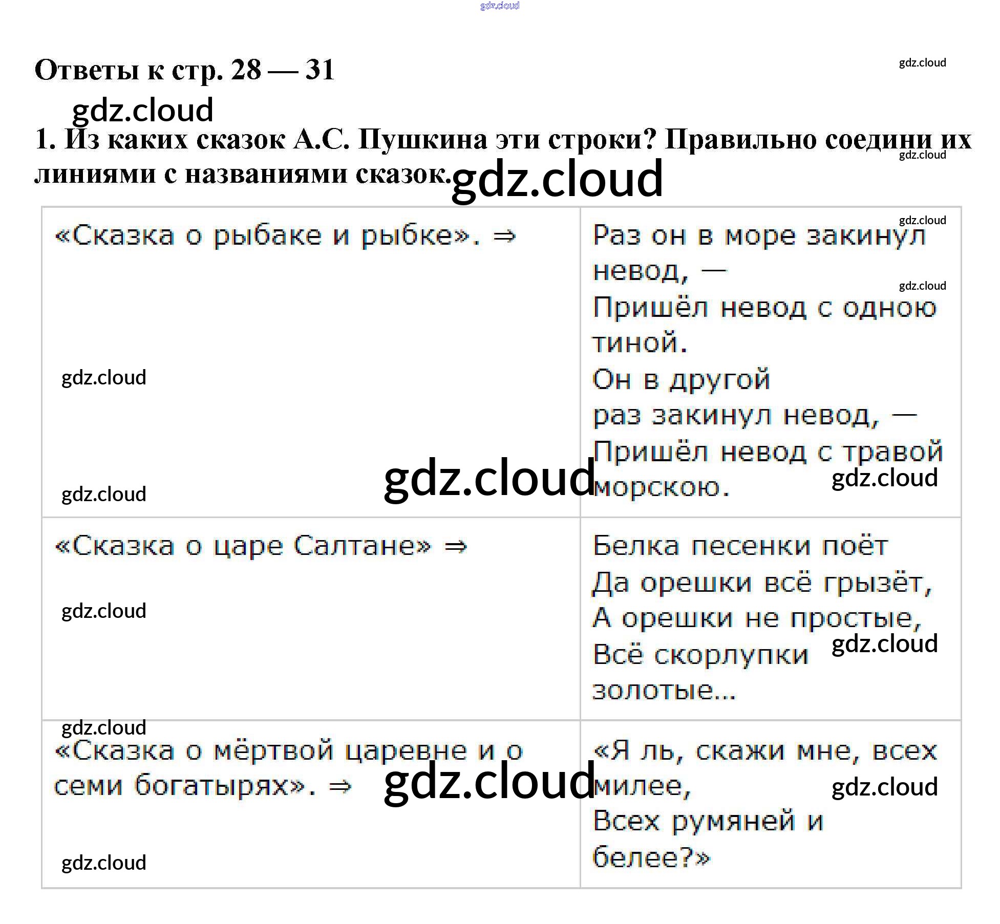 Ответы к теме «Александр Сергеевич Пушкин» (страницы 28-31) по Литературе 2 класс Рабочая тетрадь Кутявина ВАКО
