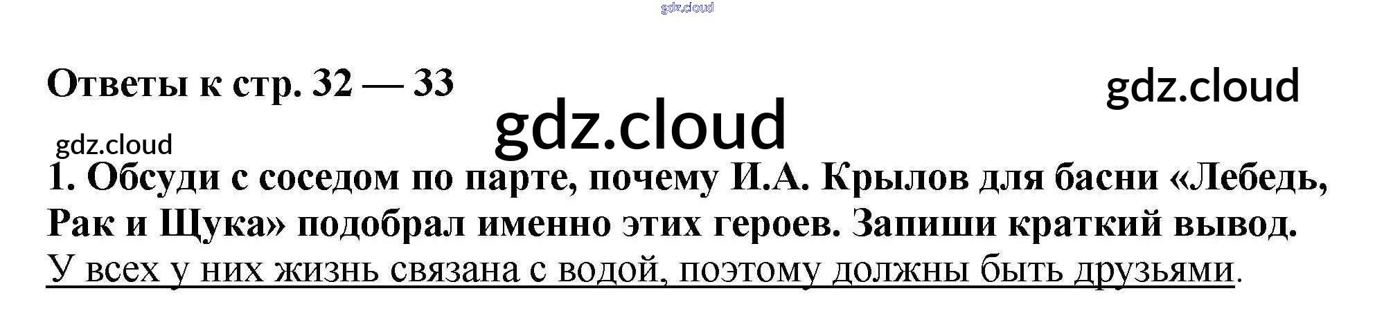 Ответы к теме «Иван Андреевич Крылов» (страницы 32-33) по Литературе 2 класс Рабочая тетрадь Кутявина ВАКО