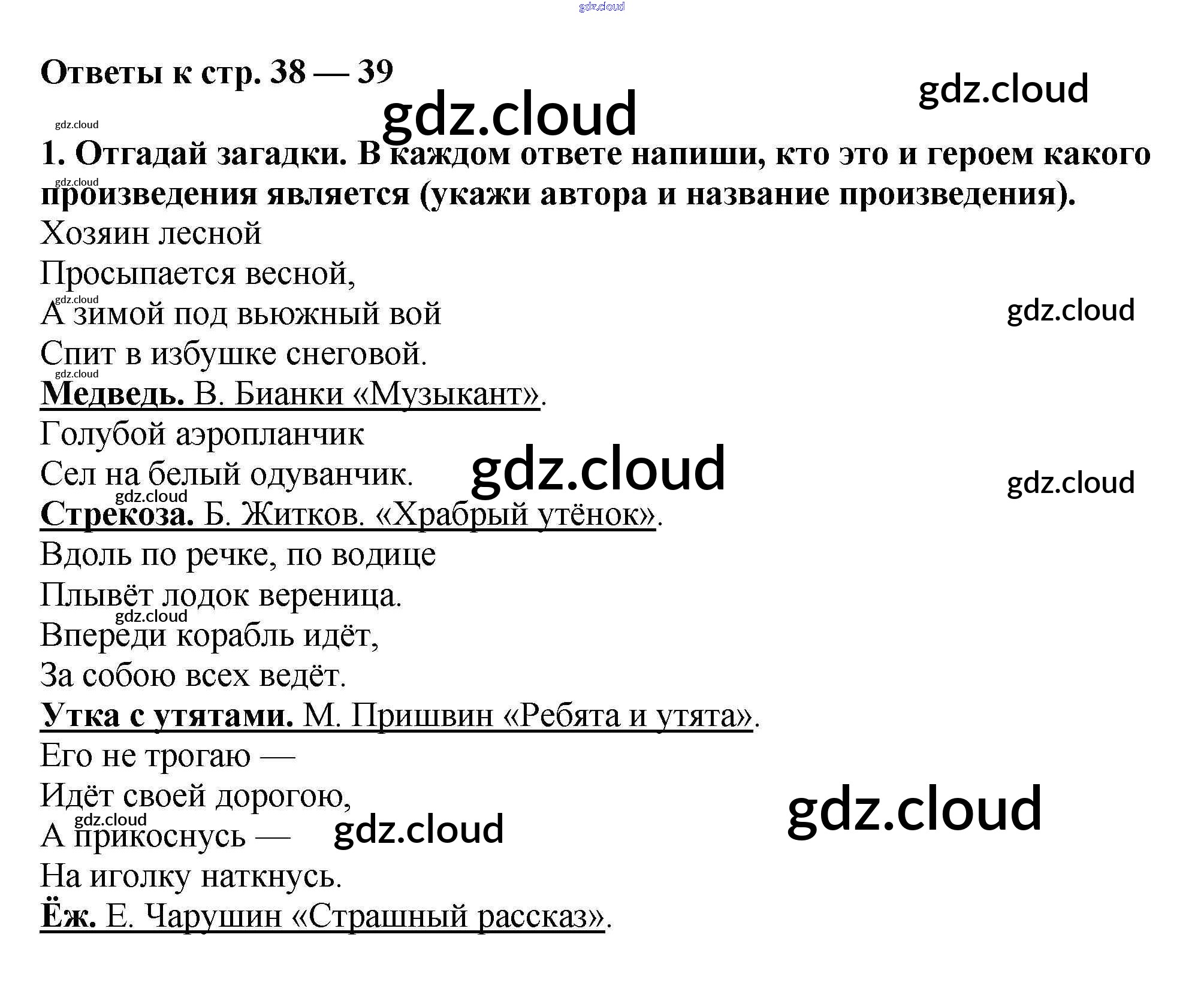 Ответы. Проверочная работа по теме «О братьях наших меньших» (страницы 38-39) по Литературе 2 класс Рабочая тетрадь Кутявина ВАКО