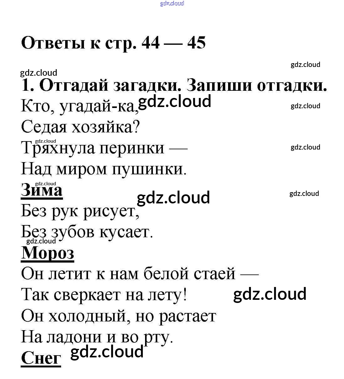 Ответы к теме «Люблю природу русскую. Зима» (страницы 44-45) по Литературе 2 класс Рабочая тетрадь Кутявина ВАКО