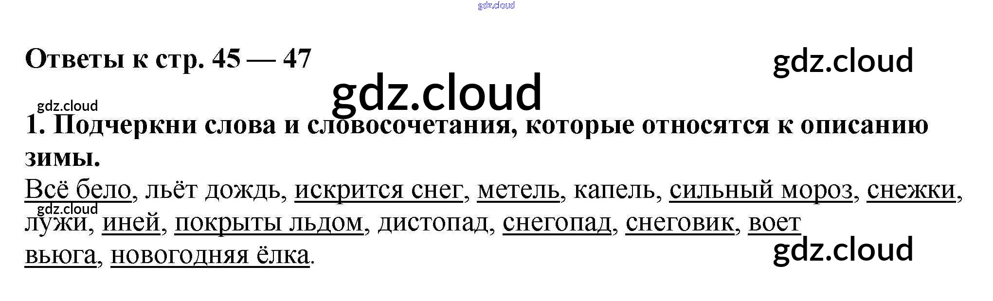 Ответы. Проверочная работа по теме «Зима» (страницы 45-47) по Литературе 2 класс Рабочая тетрадь Кутявина ВАКО