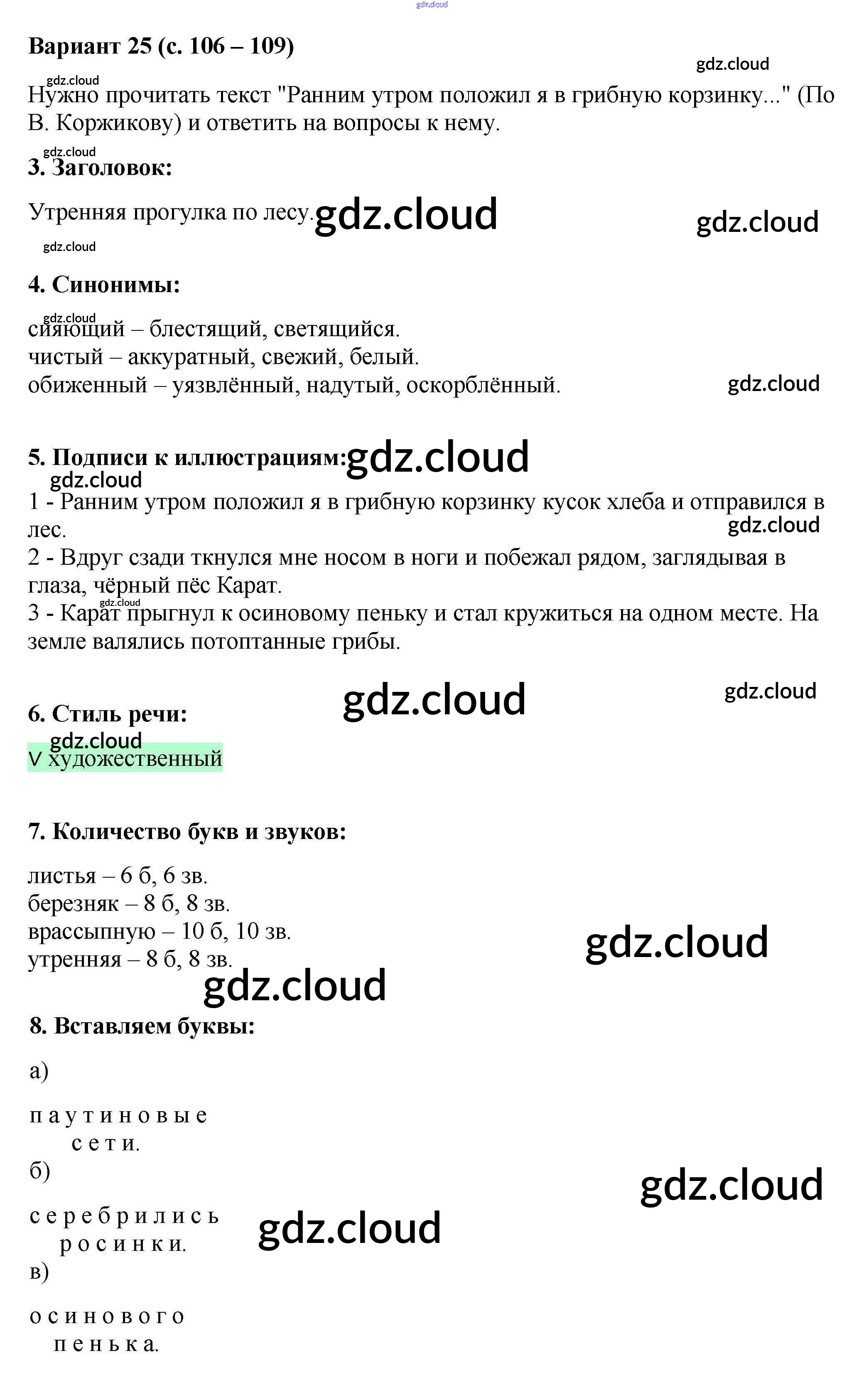 Ответ на задание 25 (с.106-109) Работа с текстом Литература за 2 (второй) класс Крылова УМК 2020 ФГОС онлайн и без номера телефона.