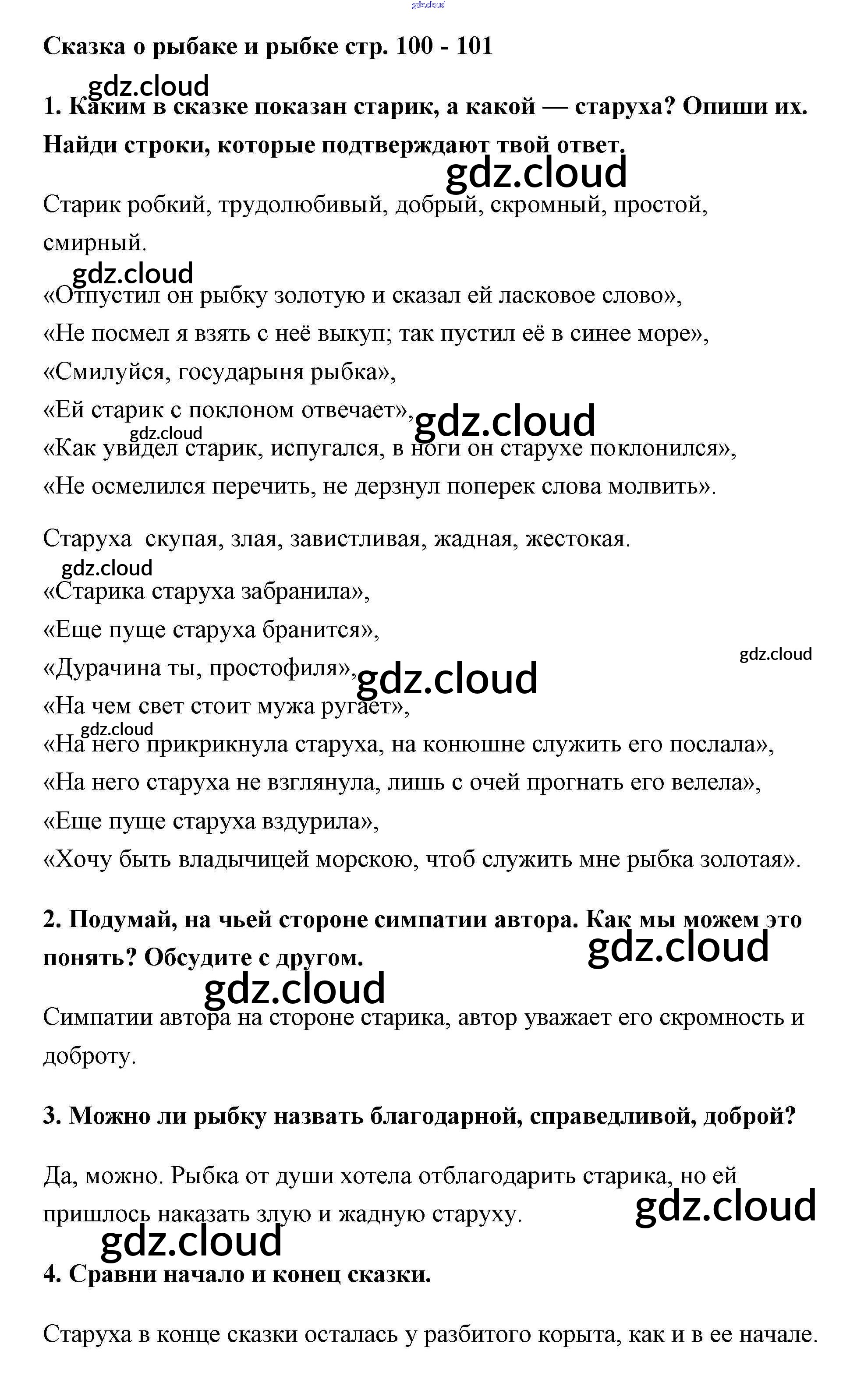Ответ на задание 100-101 Учебник Литература за 2 (второй) класс Климанова, Горецкий, Голованова Школа России 2018 Часть 1, 2