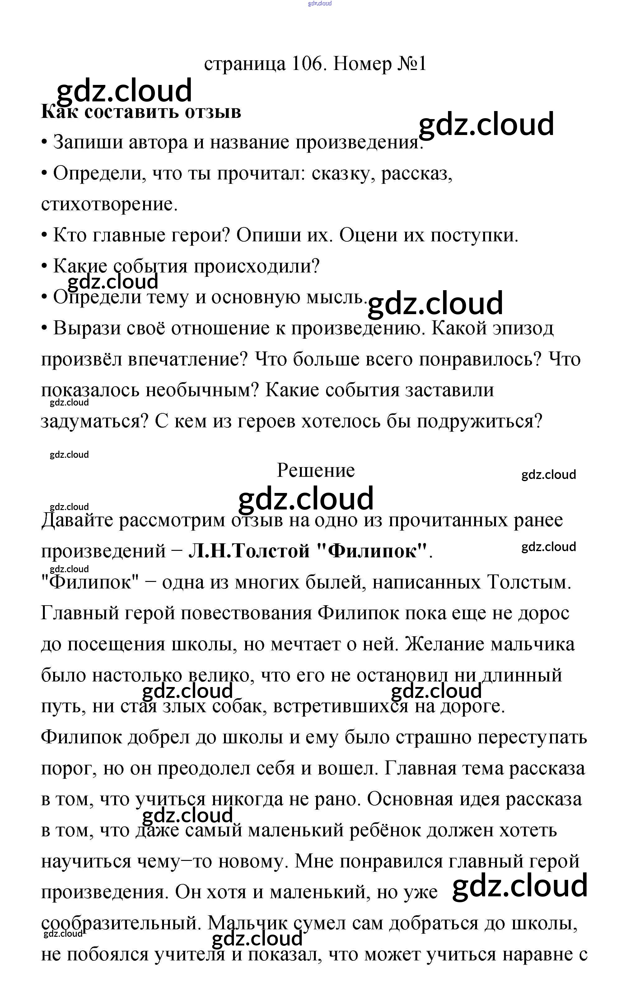 Ответ на задание 106 Учебник Литература за 2 (второй) класс Климанова, Горецкий, Голованова Школа России 2018 Часть 1, 2
