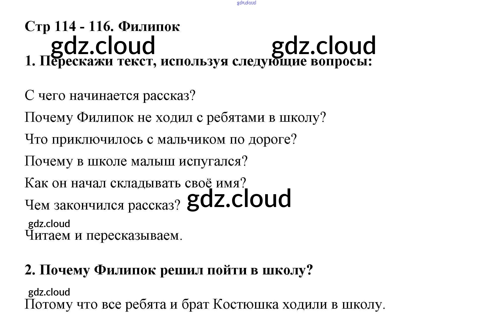 Ответ на задание 114-116 Учебник Литература за 2 (второй) класс Климанова, Горецкий, Голованова Школа России 2018 Часть 1, 2