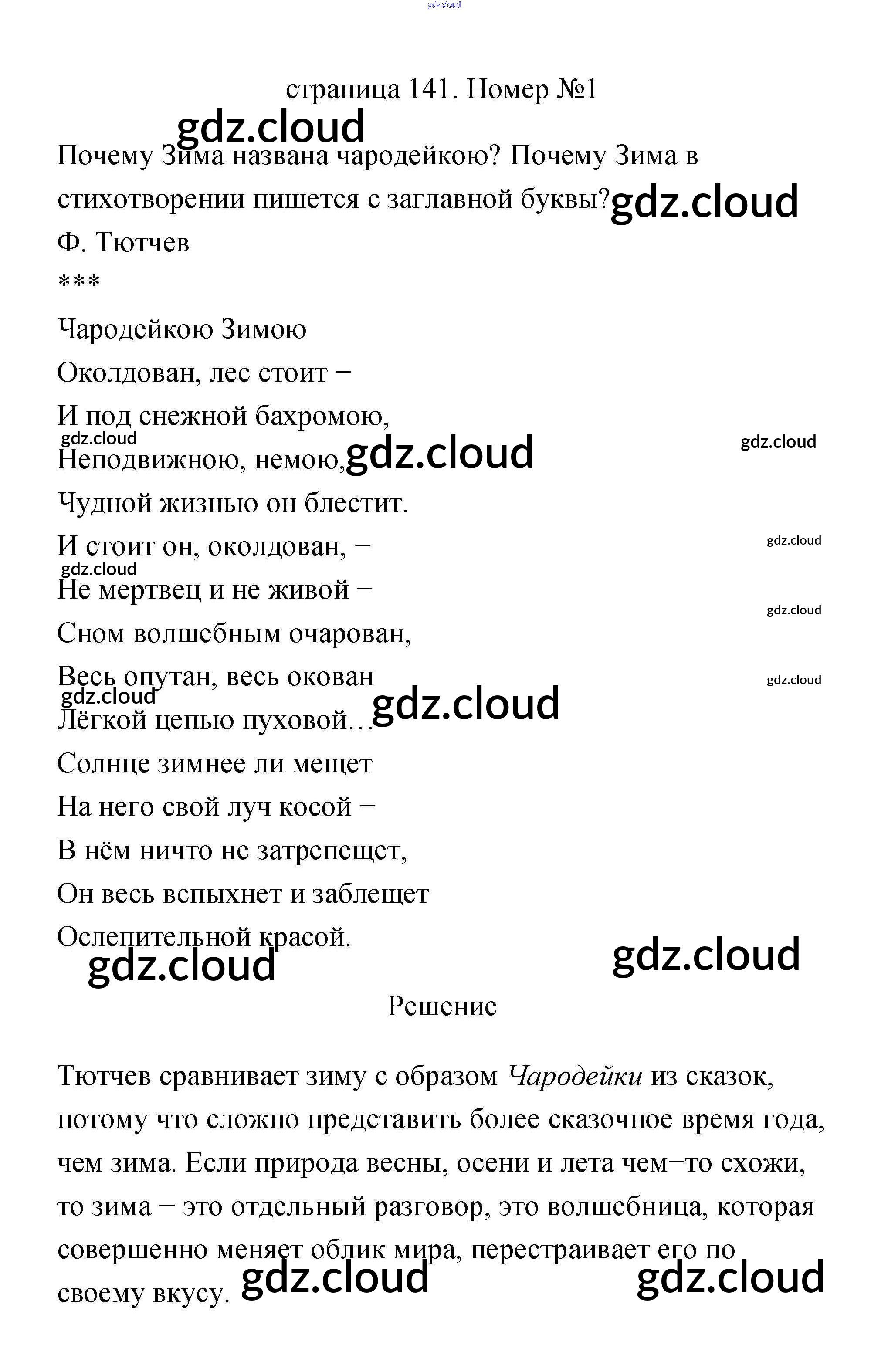 Ответ на задание 141 Учебник Литература за 2 (второй) класс Климанова, Горецкий, Голованова Школа России 2018 Часть 1, 2