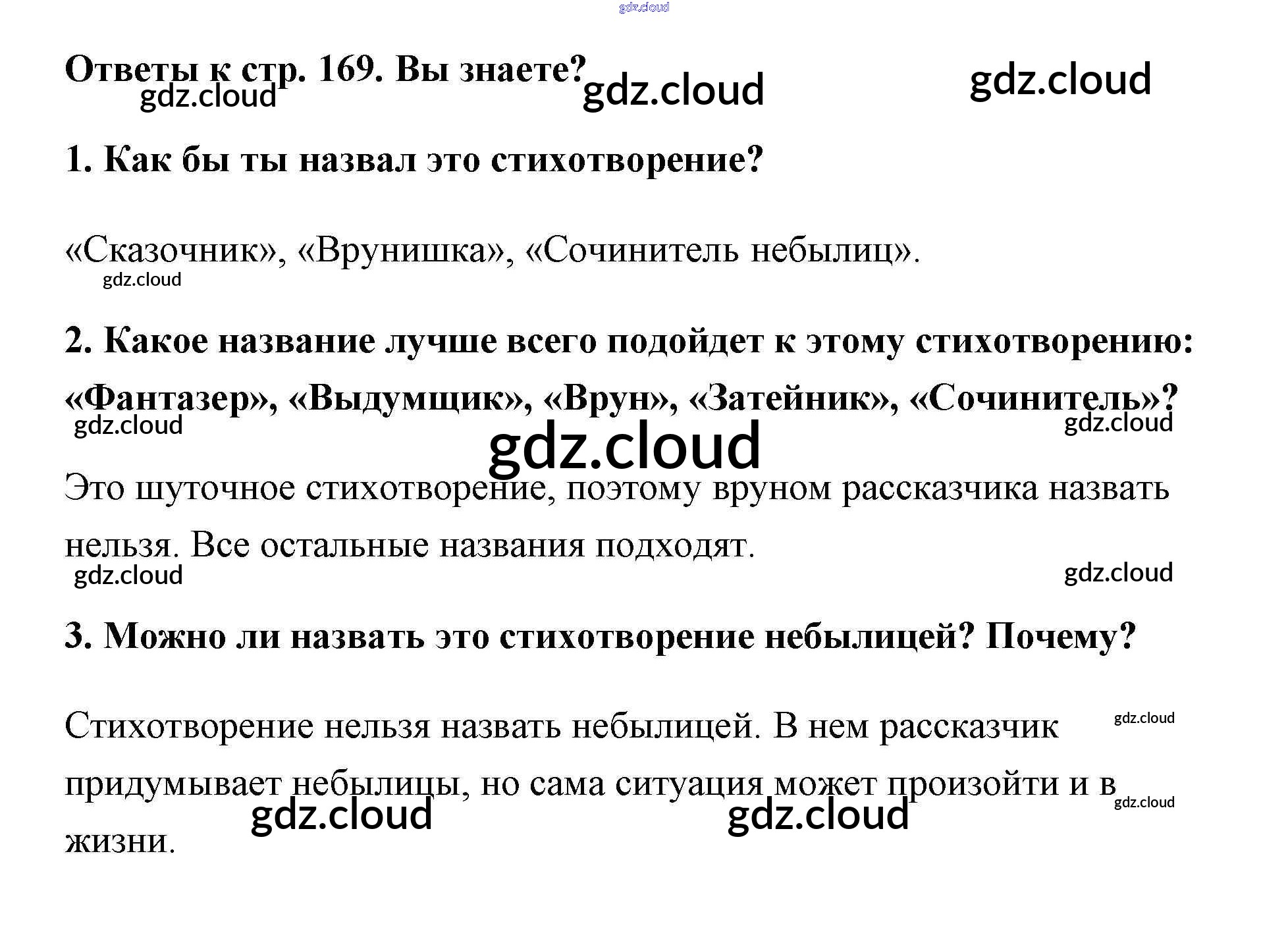 Ответ на задание 169 Учебник Литература за 2 (второй) класс Климанова, Горецкий, Голованова Школа России 2018 Часть 1, 2