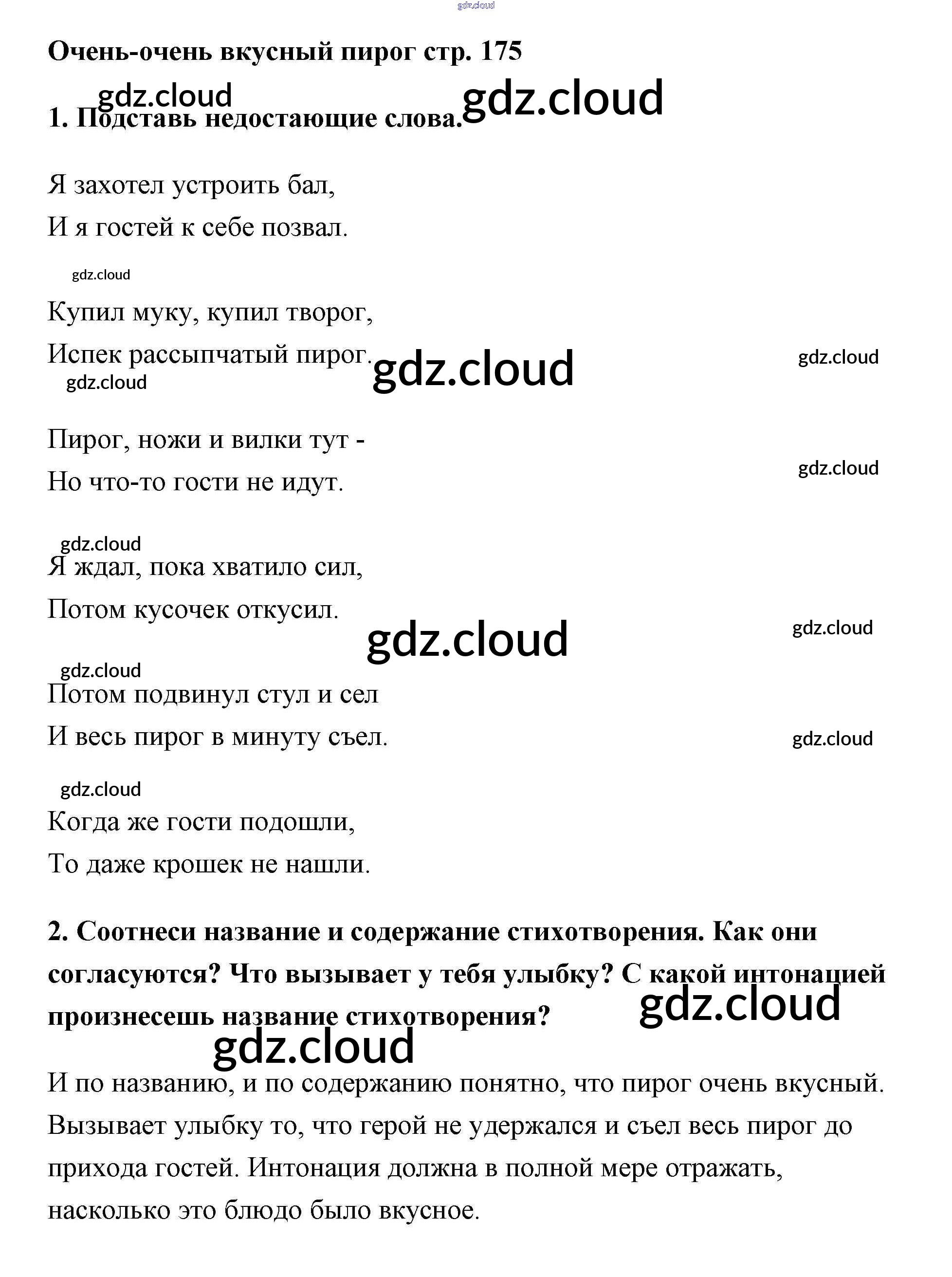 Ответ на задание 175 Учебник Литература за 2 (второй) класс Климанова, Горецкий, Голованова Школа России 2018 Часть 1, 2