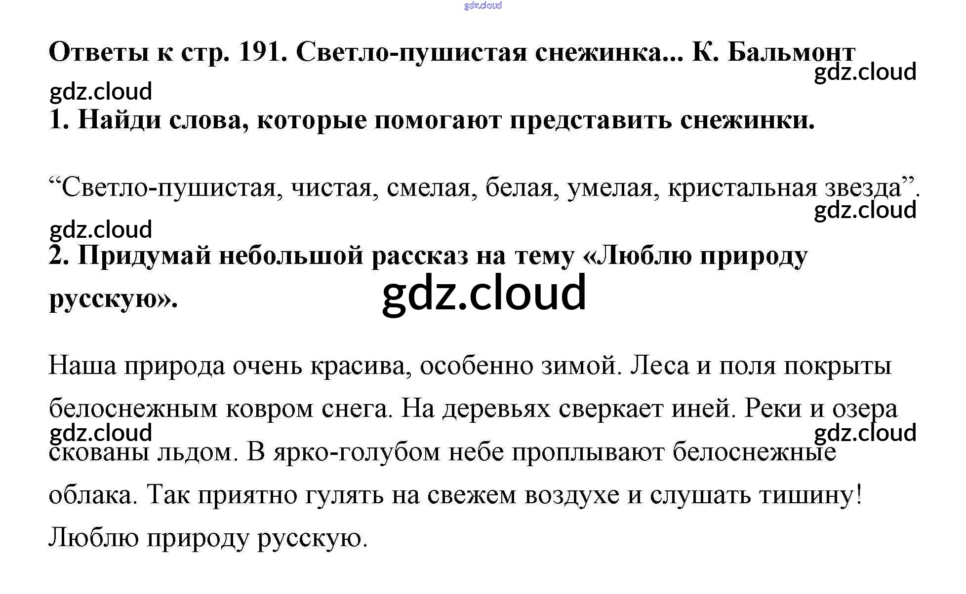 Ответ на задание 191 Учебник Литература за 2 (второй) класс Климанова, Горецкий, Голованова Школа России 2018 Часть 1, 2