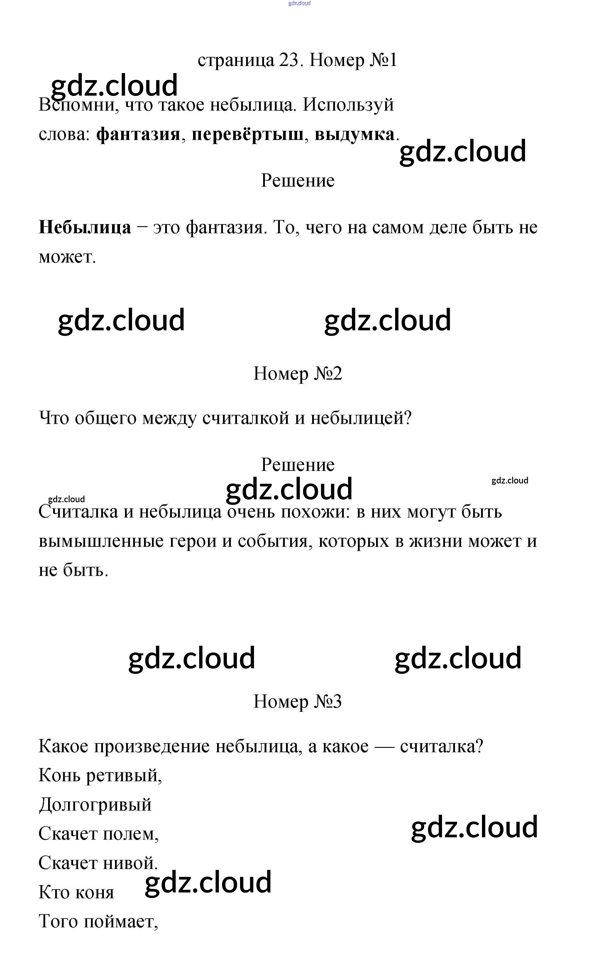 Ответ на задание 23 Учебник Литература за 2 (второй) класс Климанова, Горецкий, Голованова Школа России 2018 Часть 1, 2