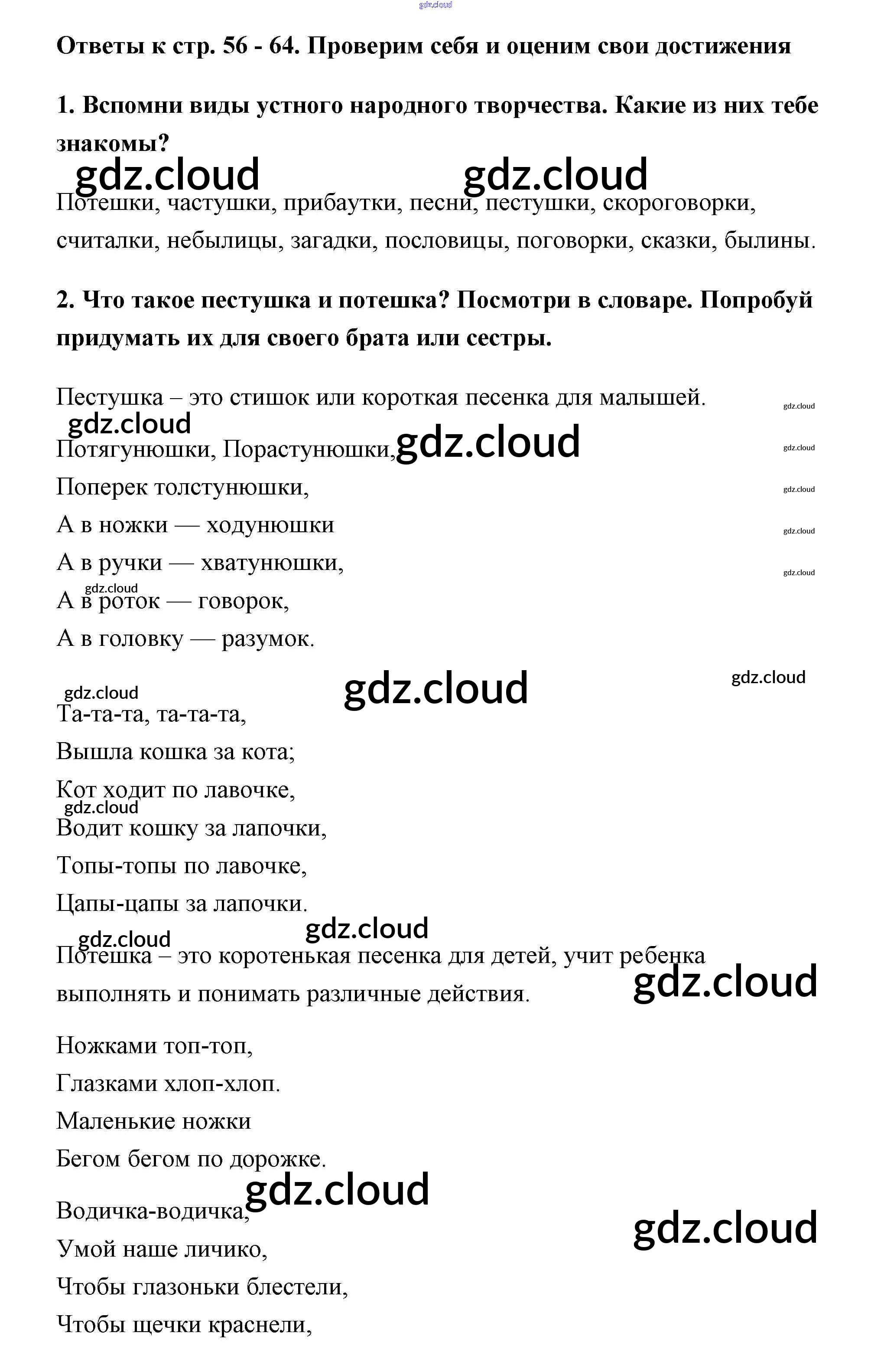 Ответы к части 1 (Страницы) по Литературе 2 класс Учебник Климанова Школа России Часть 1, 2 Просвещение