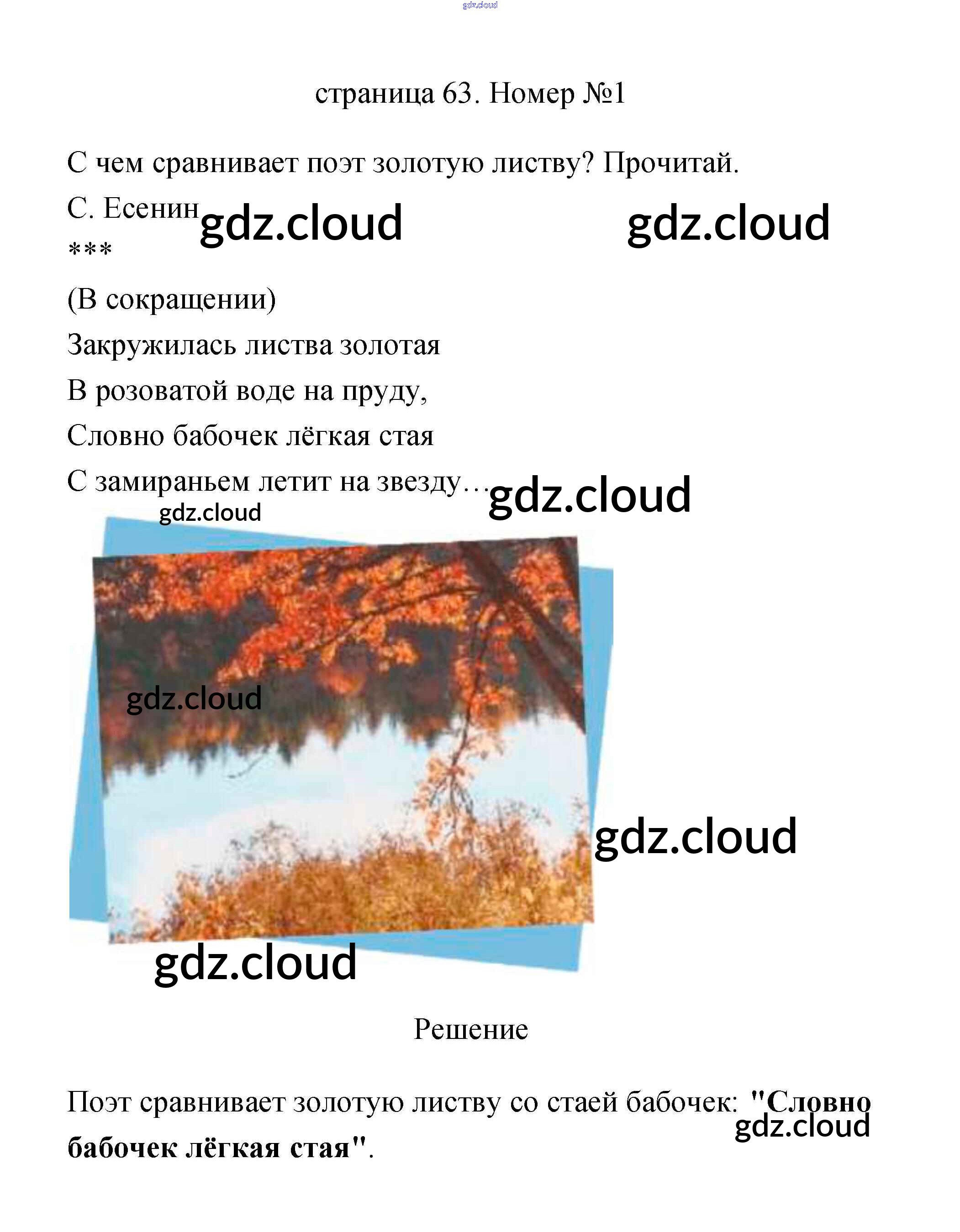 Ответ на задание 63 Учебник Литература за 2 (второй) класс Климанова, Горецкий, Голованова Школа России 2018 Часть 1, 2