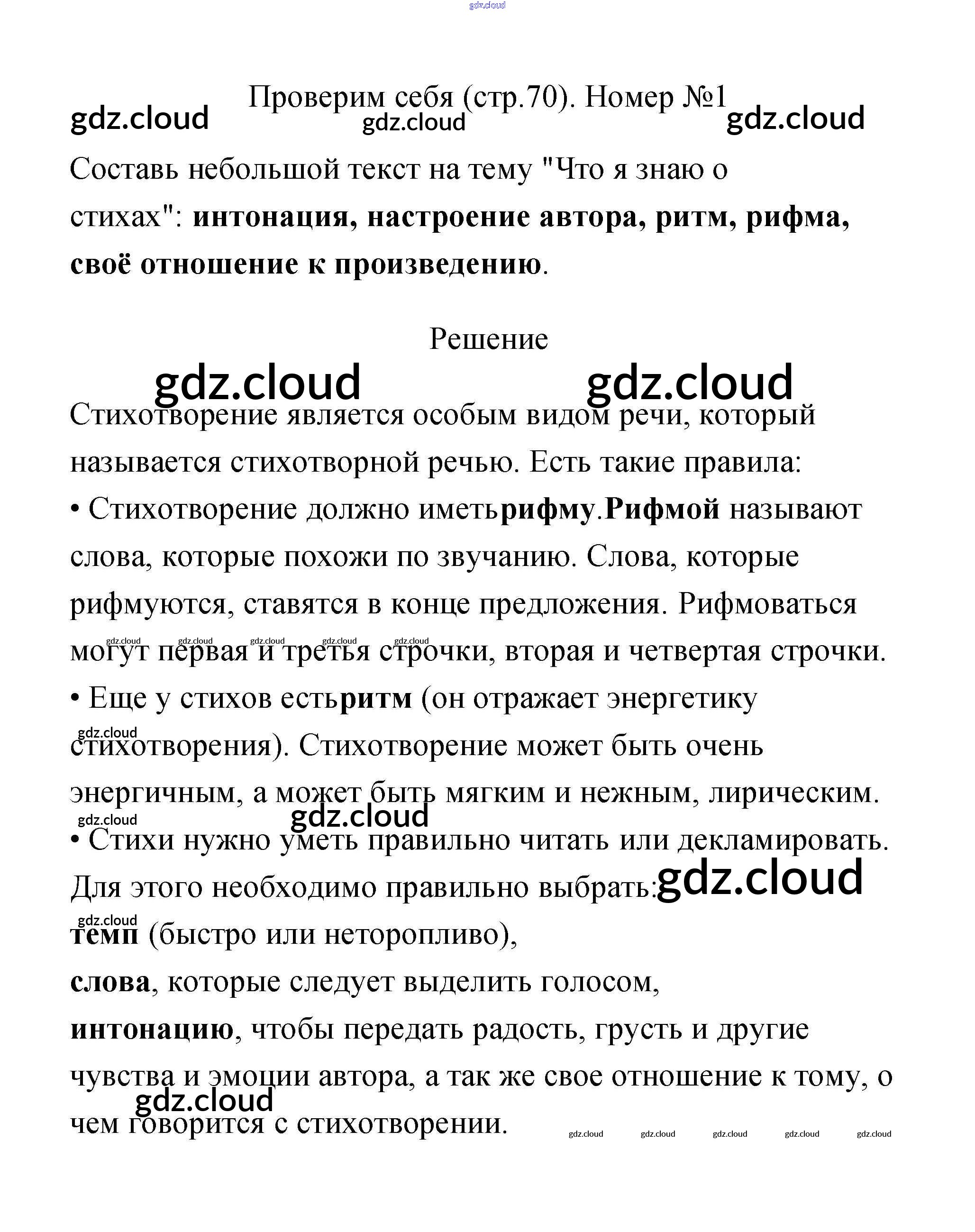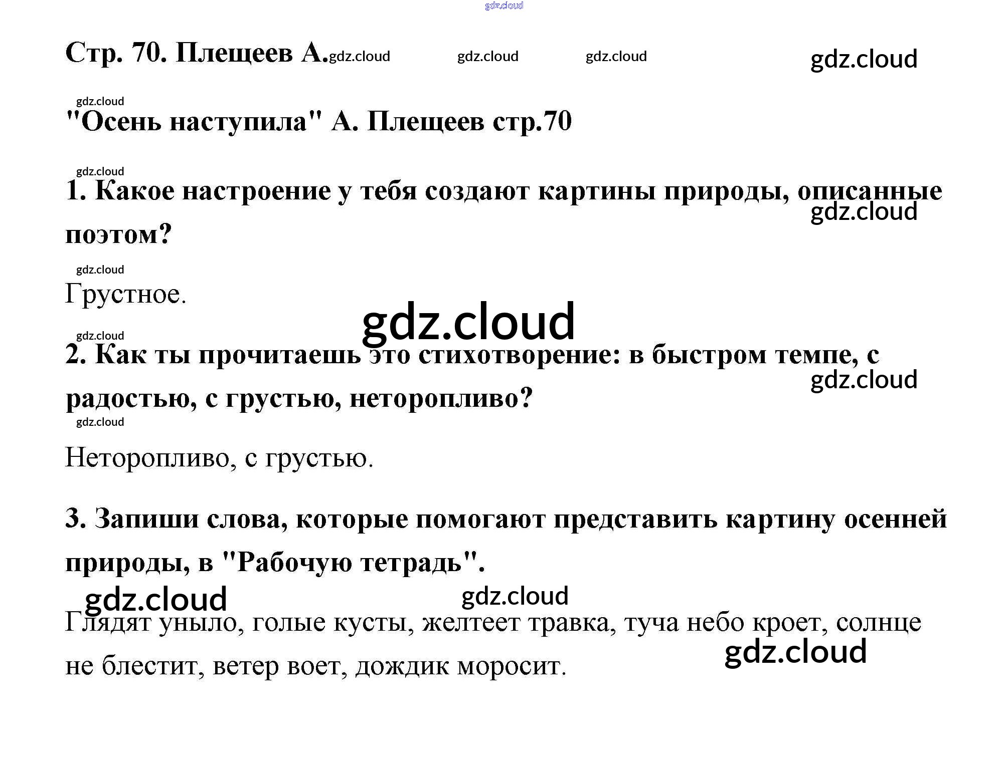 Ответ на задание 70 Учебник Литература за 2 (второй) класс Климанова, Горецкий, Голованова Школа России 2018 Часть 1, 2