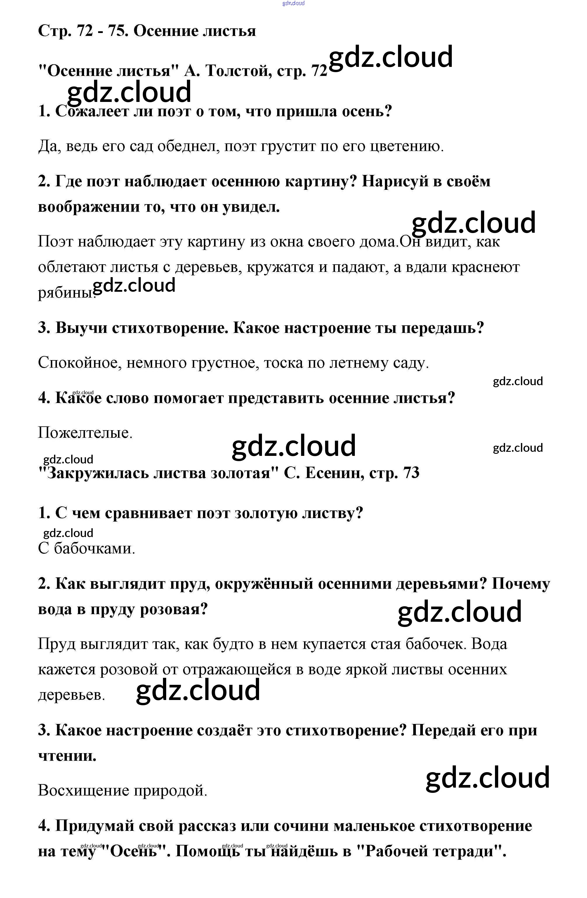 Ответ на задание 72 Учебник Литература за 2 (второй) класс Климанова, Горецкий, Голованова Школа России 2018 Часть 1, 2