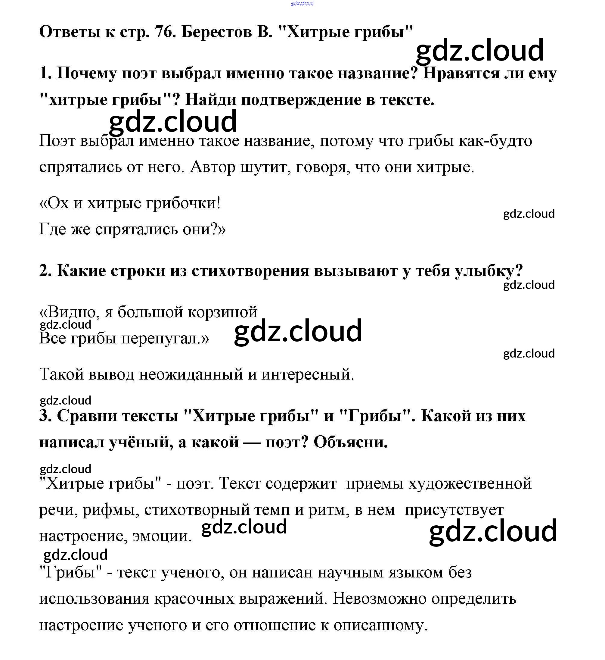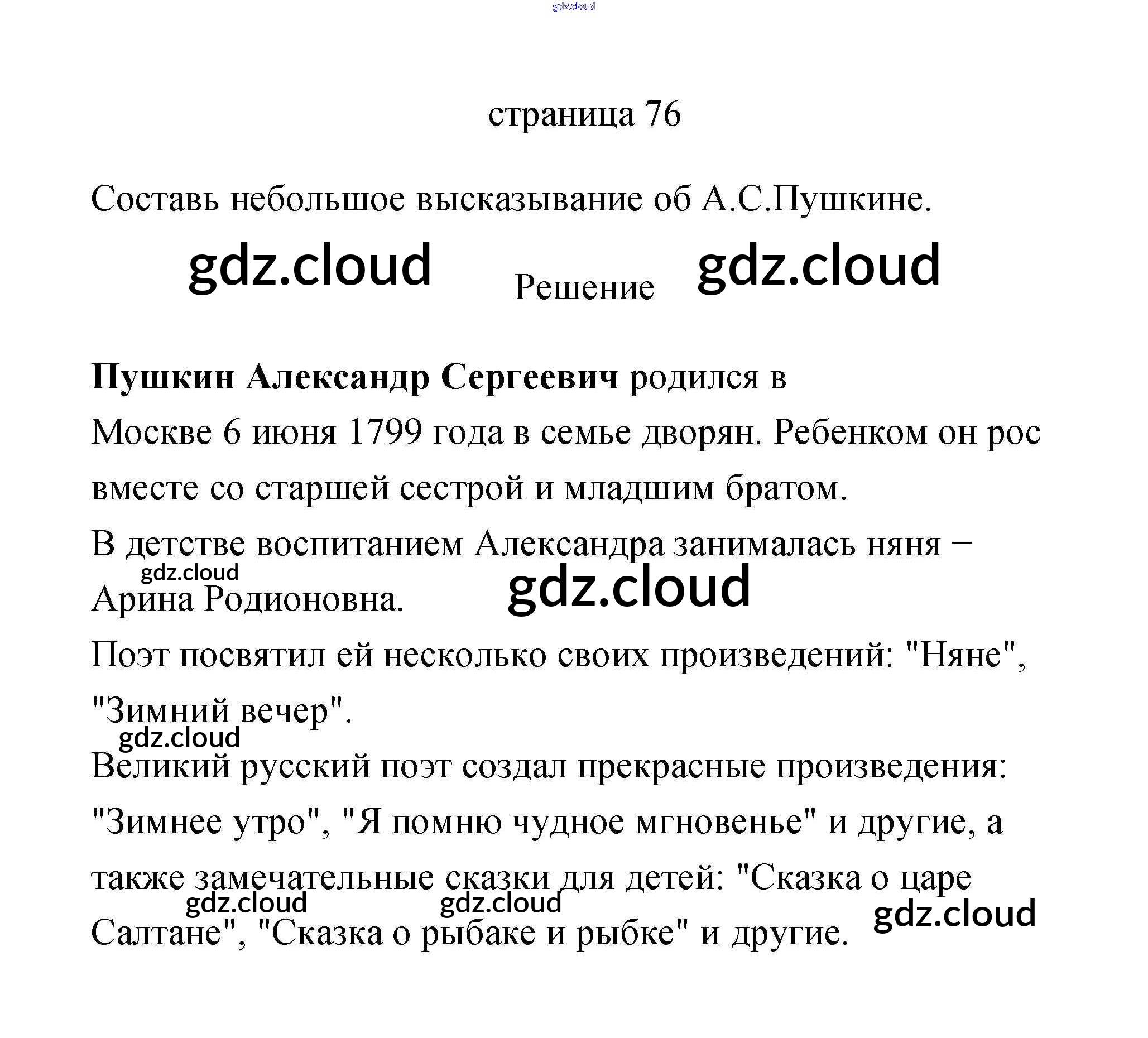 Ответ на задание 76 Учебник Литература за 2 (второй) класс Климанова, Горецкий, Голованова Школа России 2018 Часть 1, 2