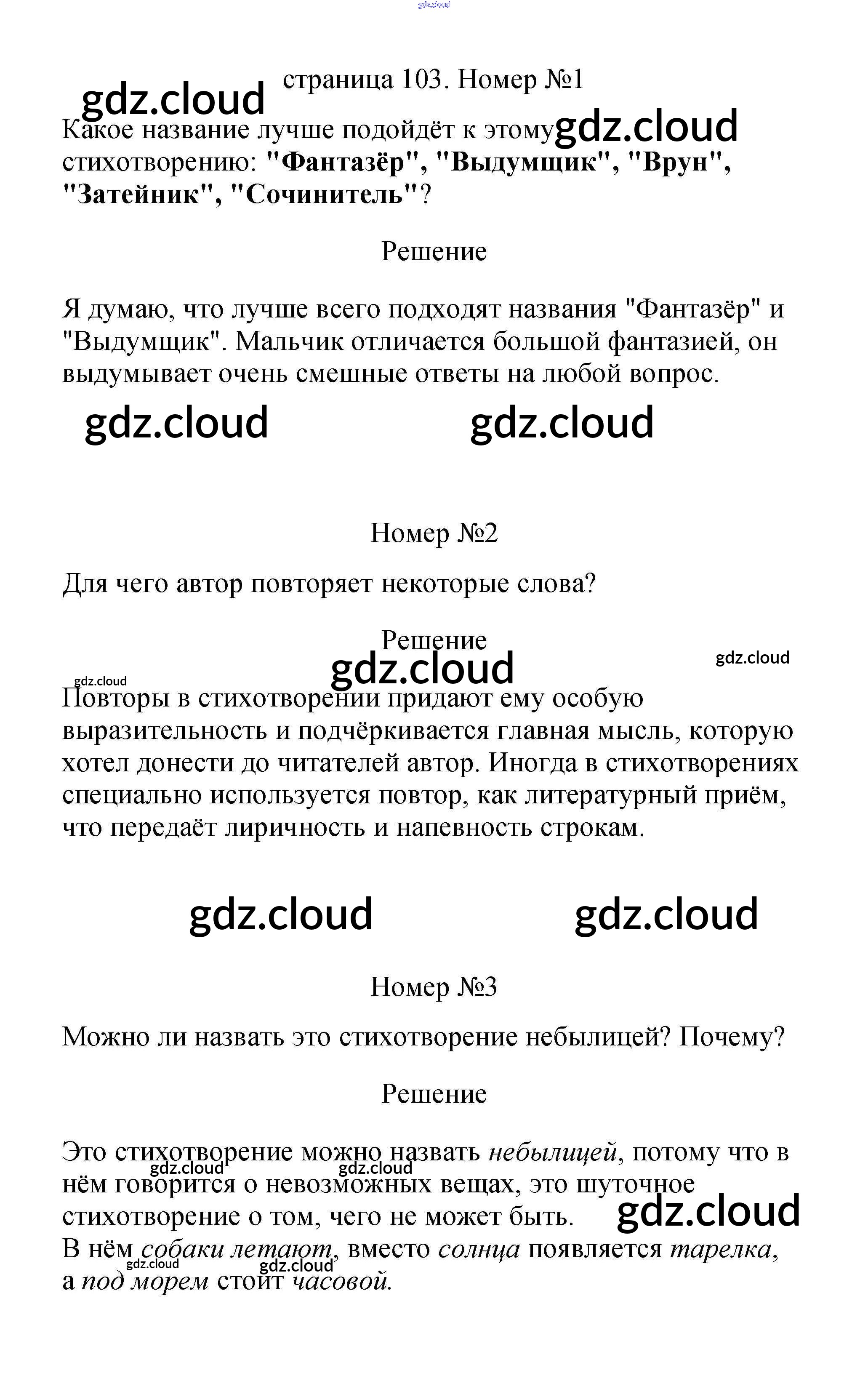 Ответ на задание 103 Учебник Литература за 2 (второй) класс Климанова, Горецкий, Голованова Школа России 2018 Часть 1, 2
