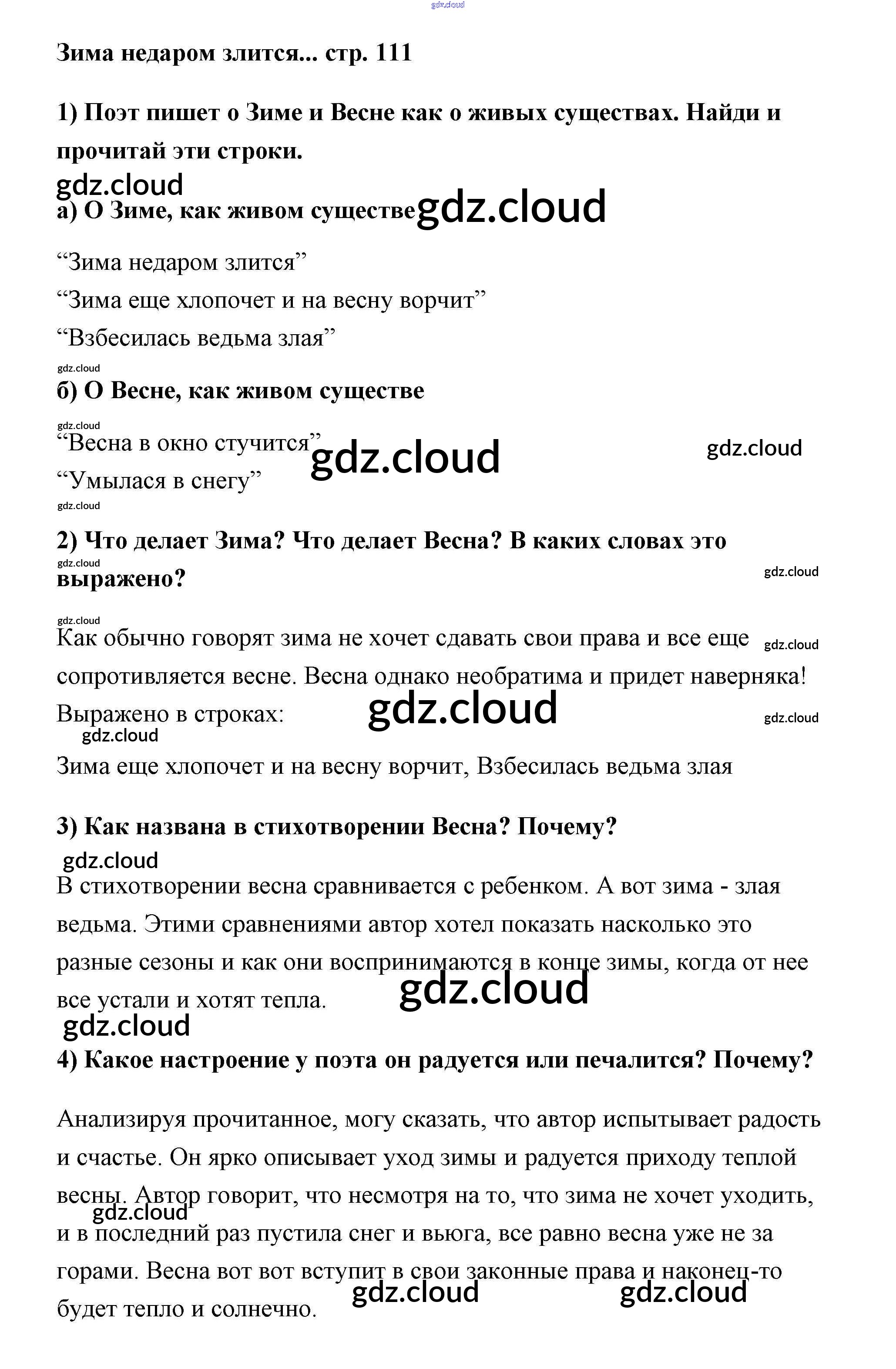 Ответ на задание 111 Учебник Литература за 2 (второй) класс Климанова, Горецкий, Голованова Школа России 2018 Часть 1, 2