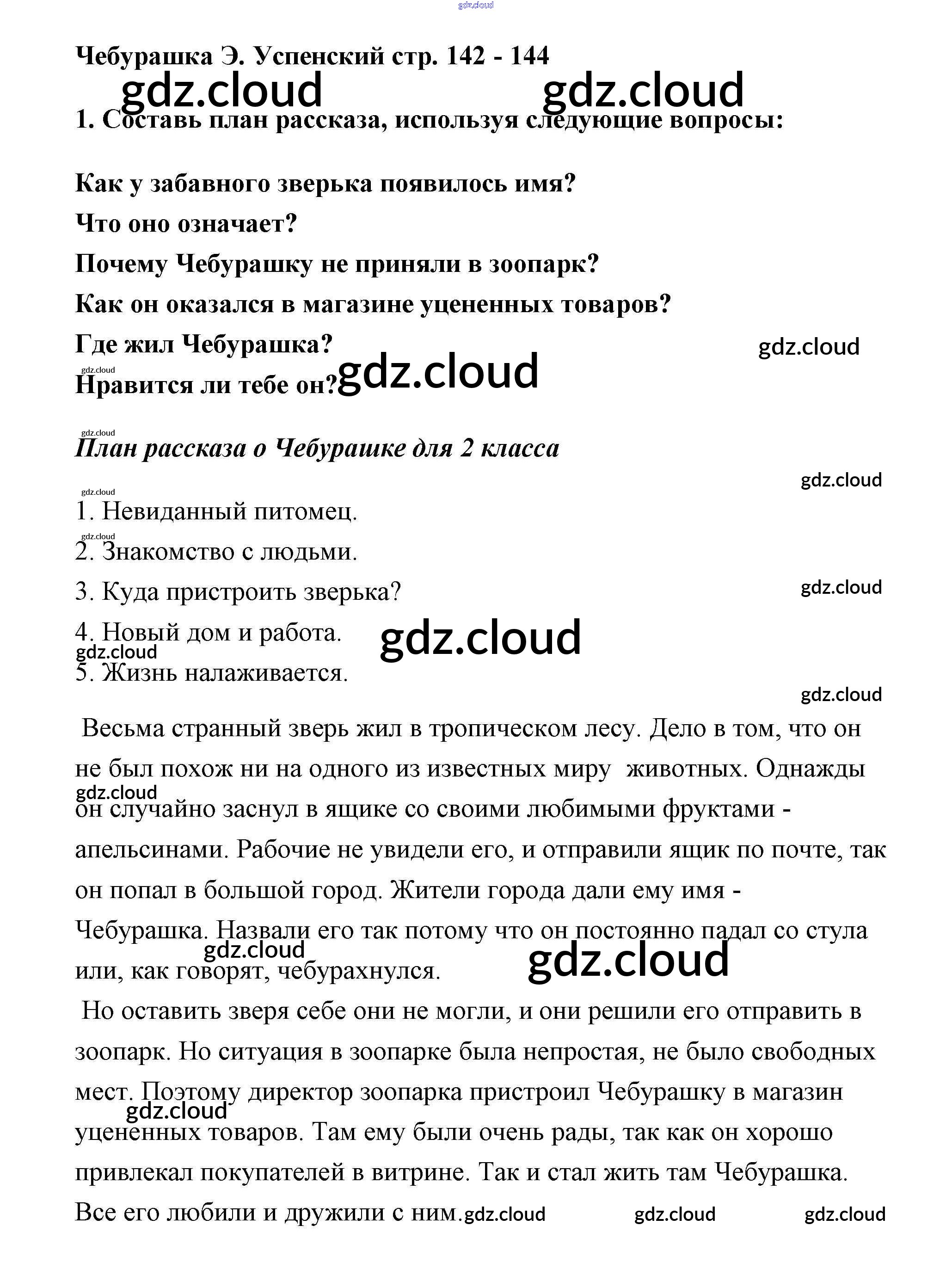 Ответ на задание 142-144 Учебник Литература за 2 (второй) класс Климанова, Горецкий, Голованова Школа России 2018 Часть 1, 2
