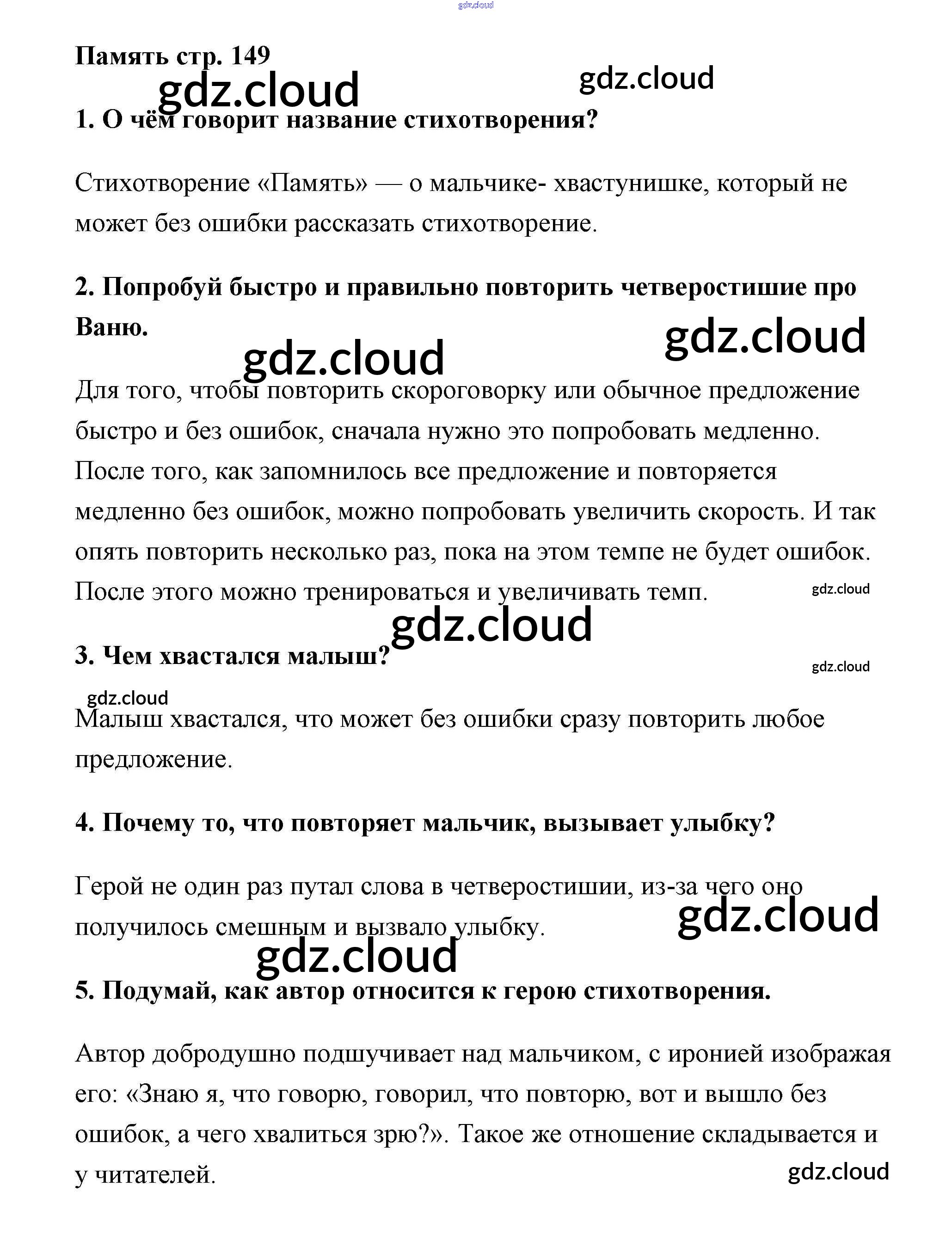 Ответ на задание 149 Учебник Литература за 2 (второй) класс Климанова, Горецкий, Голованова Школа России 2018 Часть 1, 2