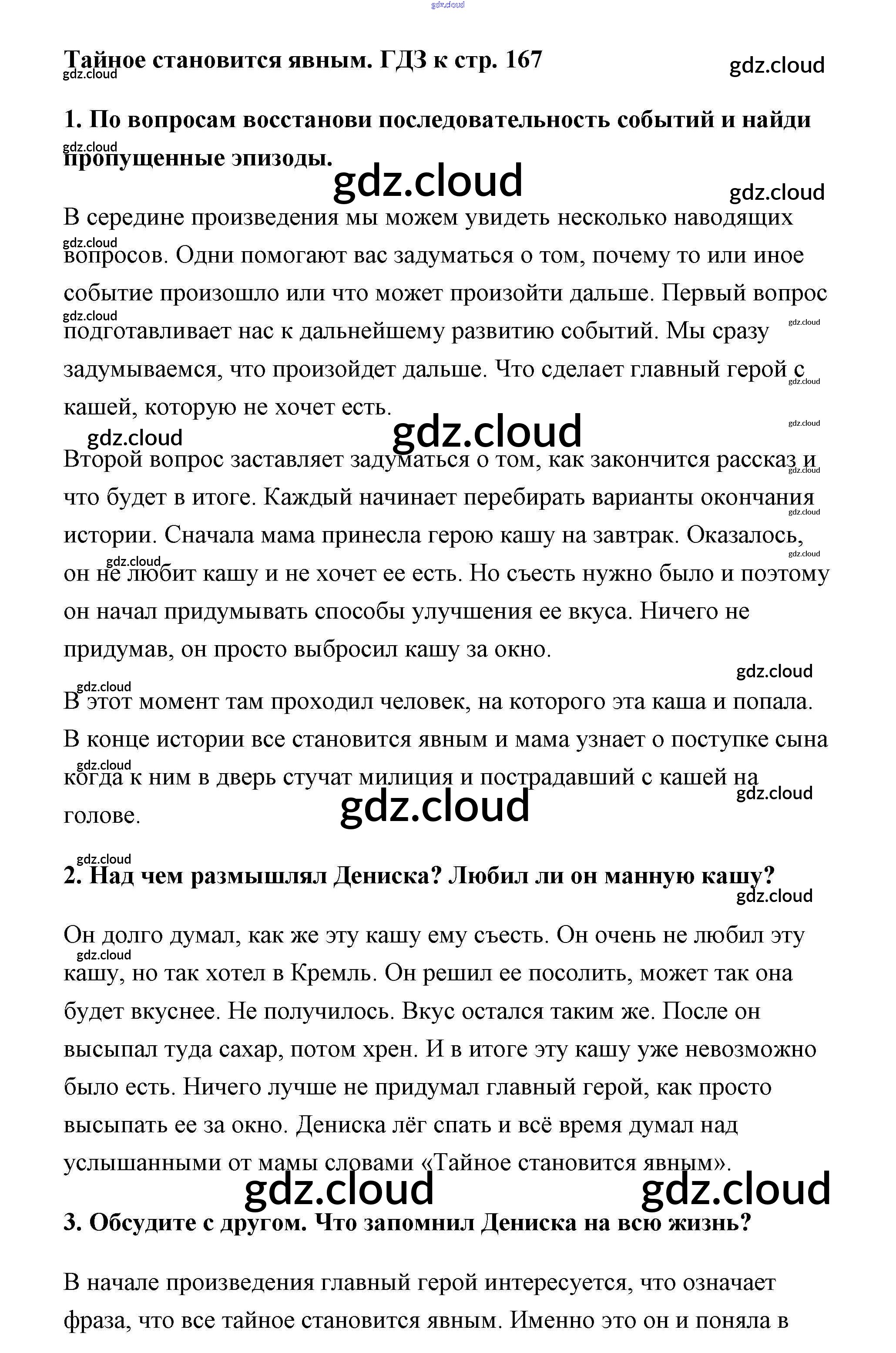 Ответ на задание 167 Учебник Литература за 2 (второй) класс Климанова, Горецкий, Голованова Школа России 2018 Часть 1, 2