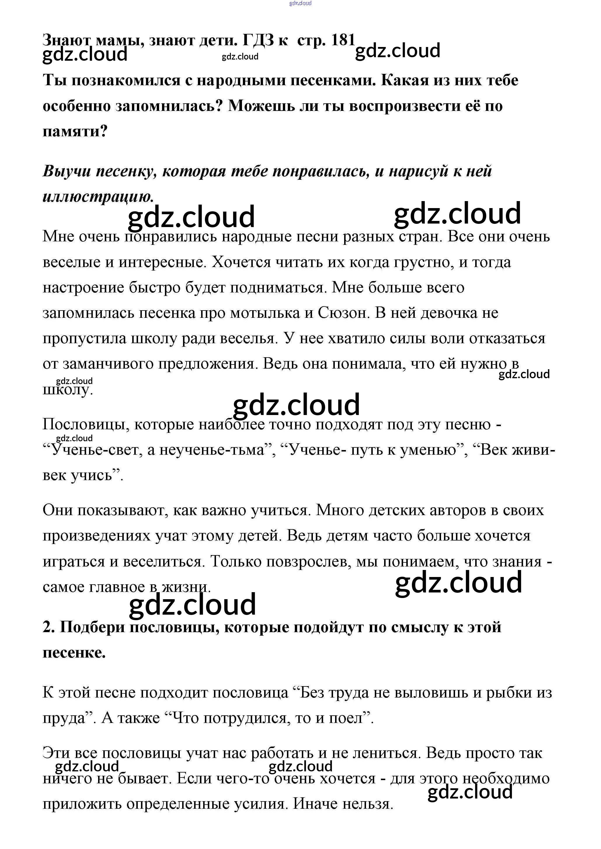 Ответ на задание 181 Учебник Литература за 2 (второй) класс Климанова, Горецкий, Голованова Школа России 2018 Часть 1, 2
